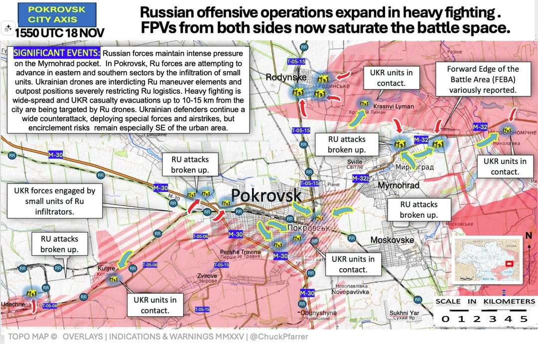 Battles are ongoing heavily in the Pokrovsk area of the front lines. Russia is pushing a 20 to 1 advantage in troops but lack training and capable equipment to make real breakthroughs.