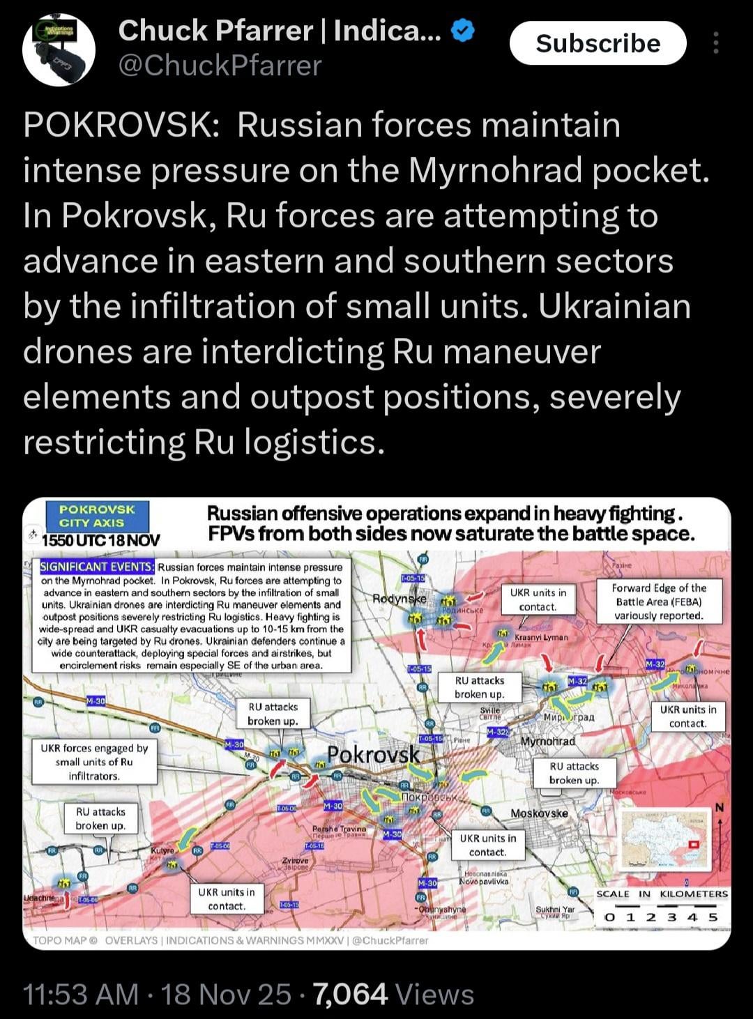 I dont get it, there are multiple videos of the Russians all around Prokrovsk and even north of it, even ISW cofirms it and it shows Myrnohrad in a cauldron why do you chose to belive this random guy in Twitter? just becouse the tells what you want to hear?