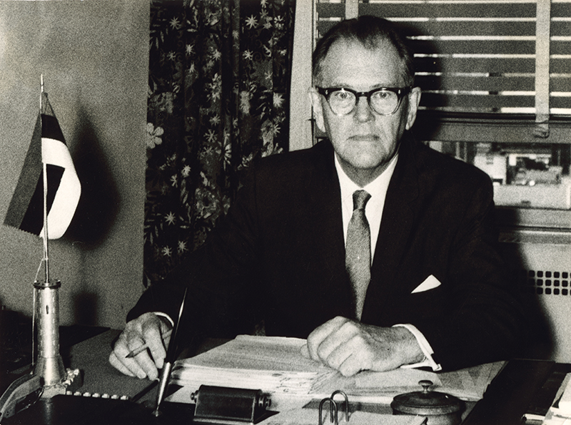 Diplomat Ernst Jaakson (1905–1998) at his desk at the Estonian Consulate General in New York City. Photo by the Estonian foreign ministry.