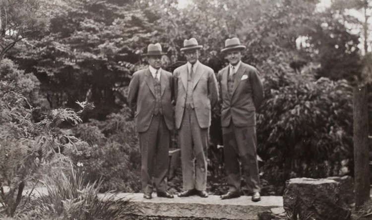 Honorary Consul Martin Coffer (left), his secretary Ernst Jaakson (right), and Georg Meri (centre), head of the Estonian foreign ministry’s information bureau, photographed in San Francisco in 1930. Credit: the Estonian foreign ministry.