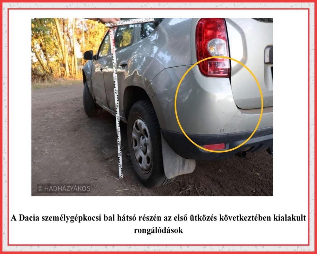 1) NEM EGY, HANEM TÖBB ÜTKÖZÉS VOLT! A szakértő egy erre készült szoftverrel kockáról kockára elemezte a videó kép és hanganyagát. Ennek alapján azonosította a Dacia HÁTSÓ lökhárítóján keletkezett sérülés okát: először (szándékosan) hátulról jött nekem az őr.