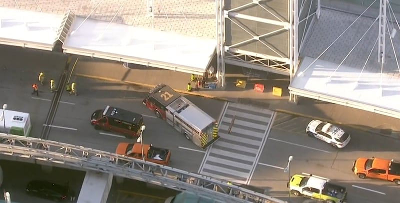 Images from the scene showed that multiple ambulances, firetrucks, and police cruisers responded to the collision. At least once vehicle involved in the crash appears to have rammed into a planter near the side of the airport.