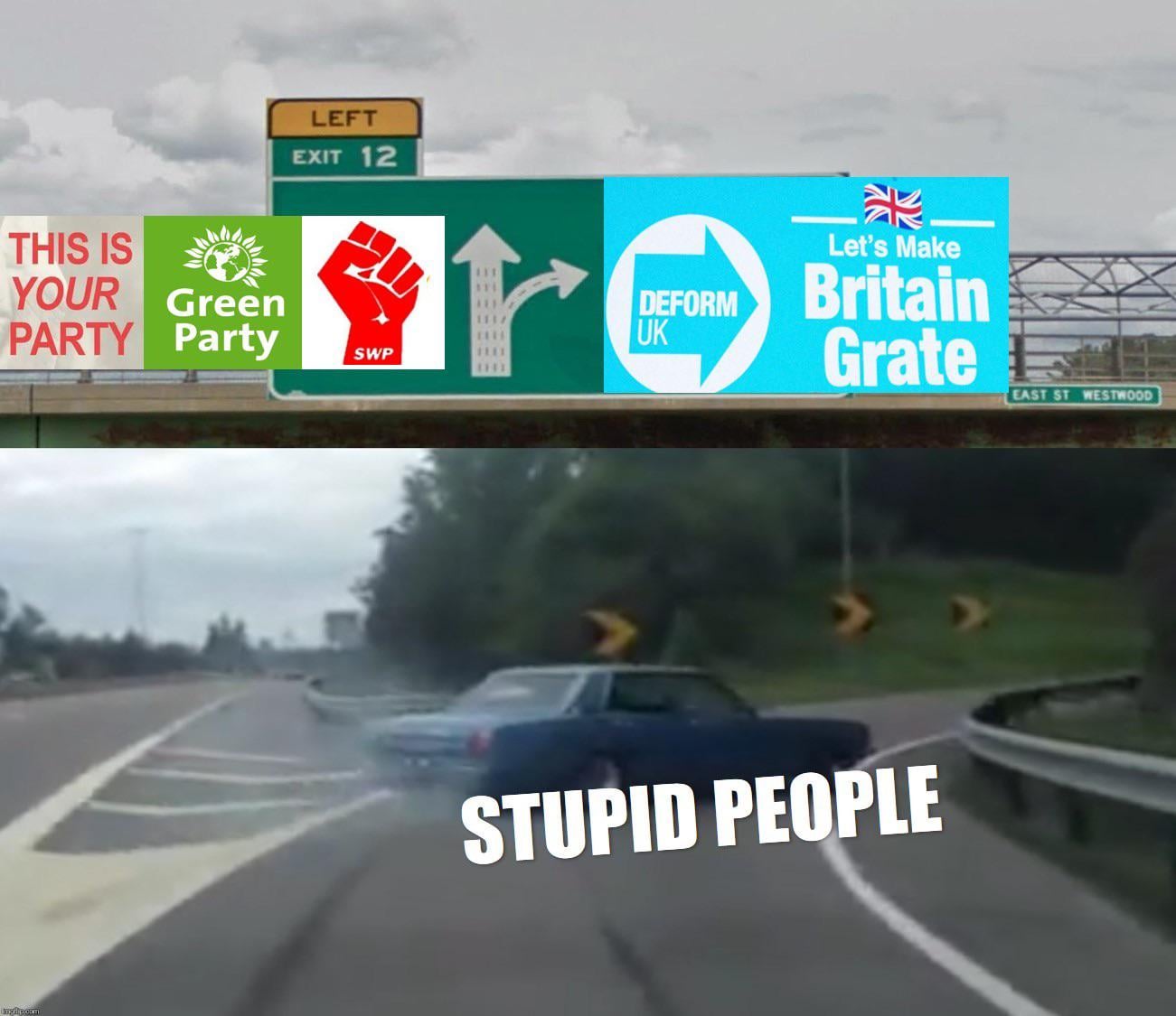 Time to leave this sub I think, maybe its because I’ve been interacting with it more but all I see nowadays is hurr durr other party is stupid I current hate the greens, Labour, the Conservatives and Reform and couldnt care less about the constant shit thrown from both sides. Where are the memes?