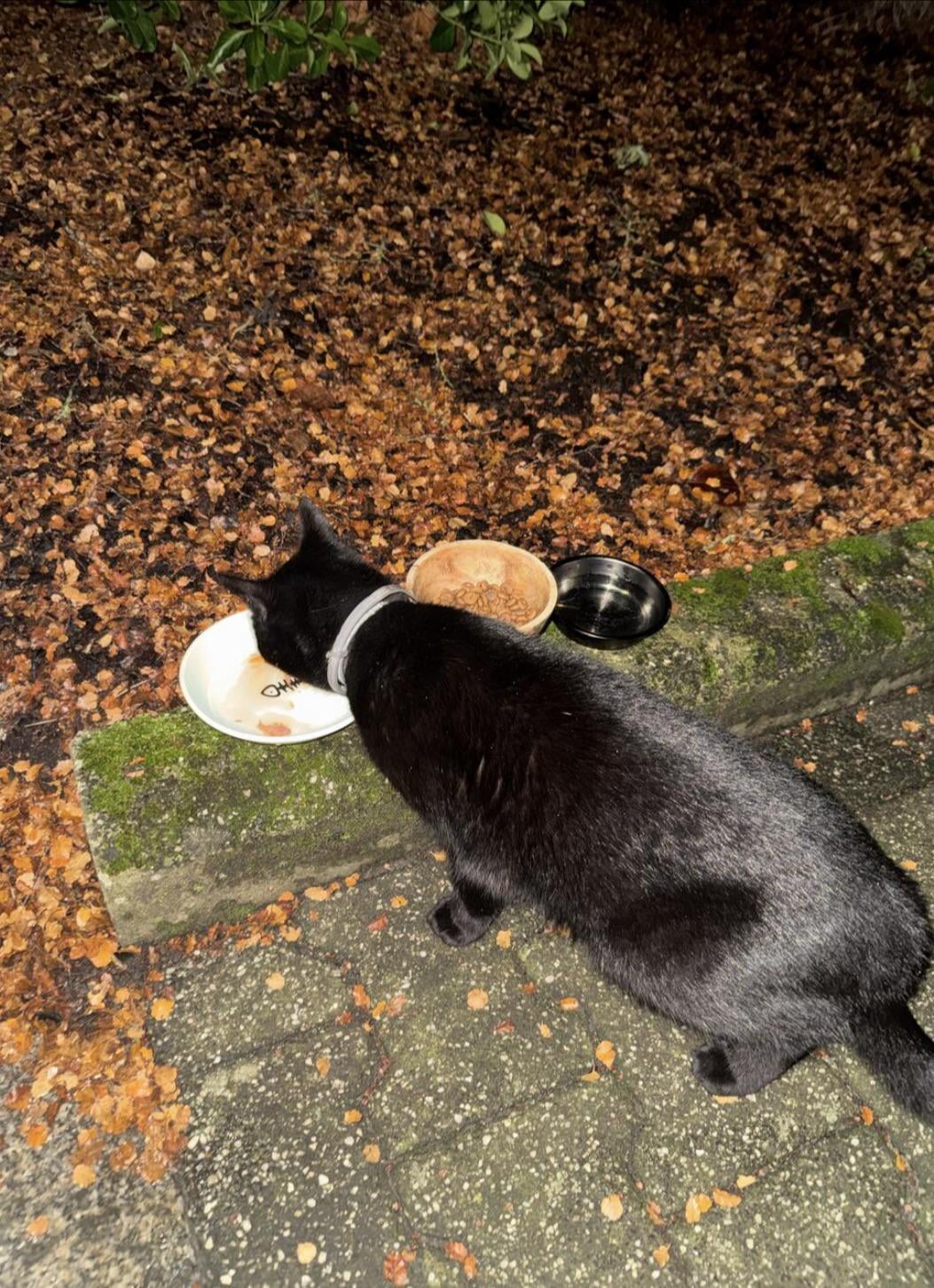 4. It is very common in Luxembourg to let cats roam outside. They’re always hungry and will eat from whoever feeds them, so this one is likely to return to you. However the collar and shiny fur and round body point towards it having a loving home. If it starts looking dirty or skinnier, that’s when you can worry about it being homeless.
