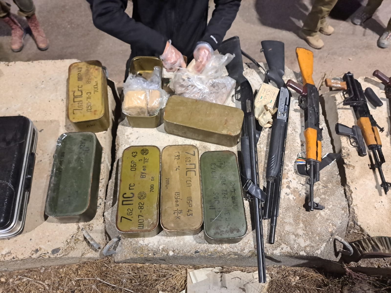 Weapons found by Israeli forces following an attempted smuggling from Syria into Israel, in a handout photo issued on November 19, 2025. (Shin Bet)