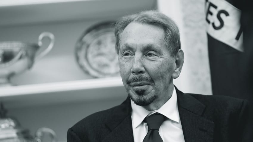 Oracle co-founder Larry Ellison sits with Donald Trump in the Oval Office. (Photo by Anna Moneymaker/Getty Images)