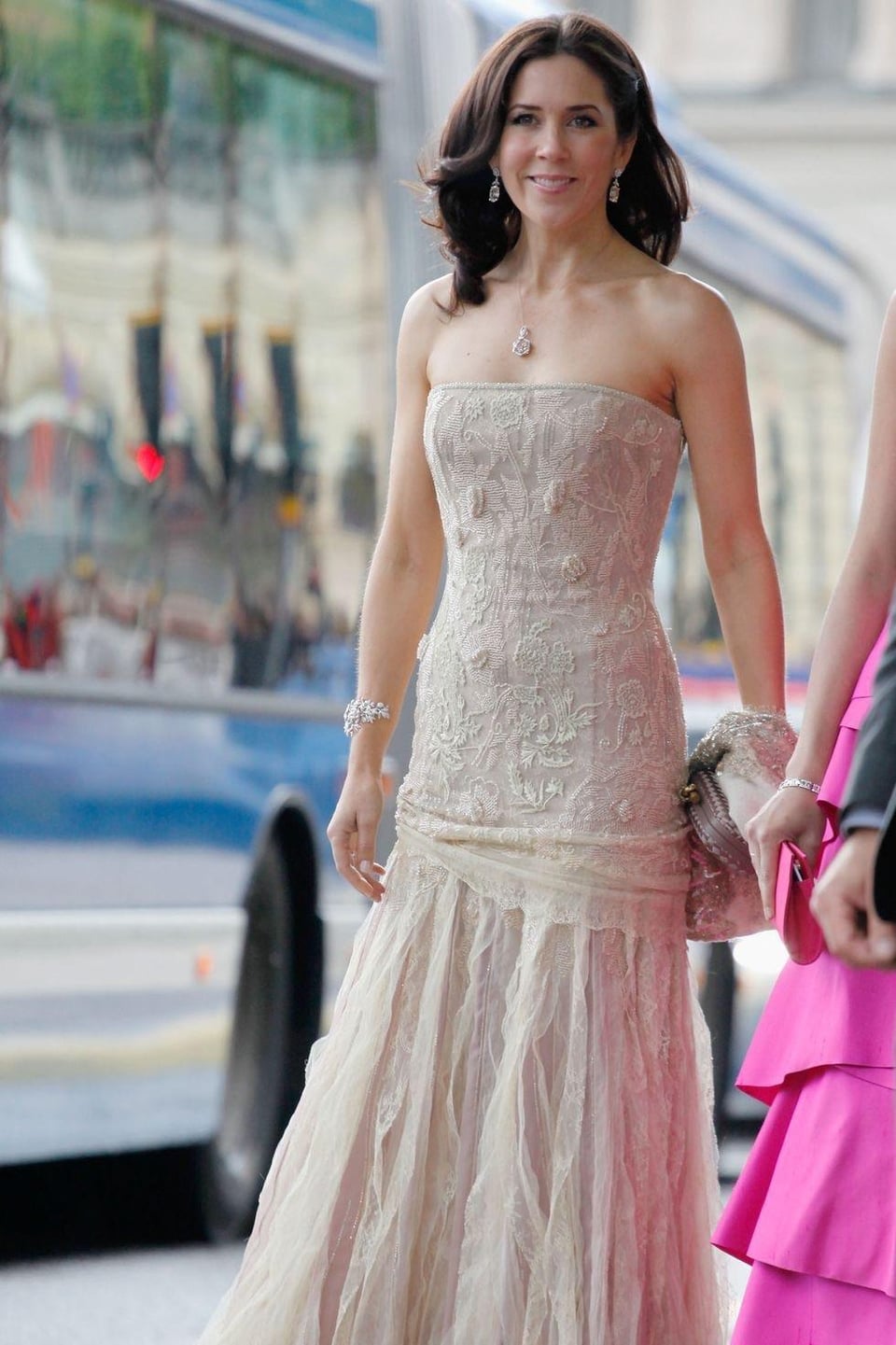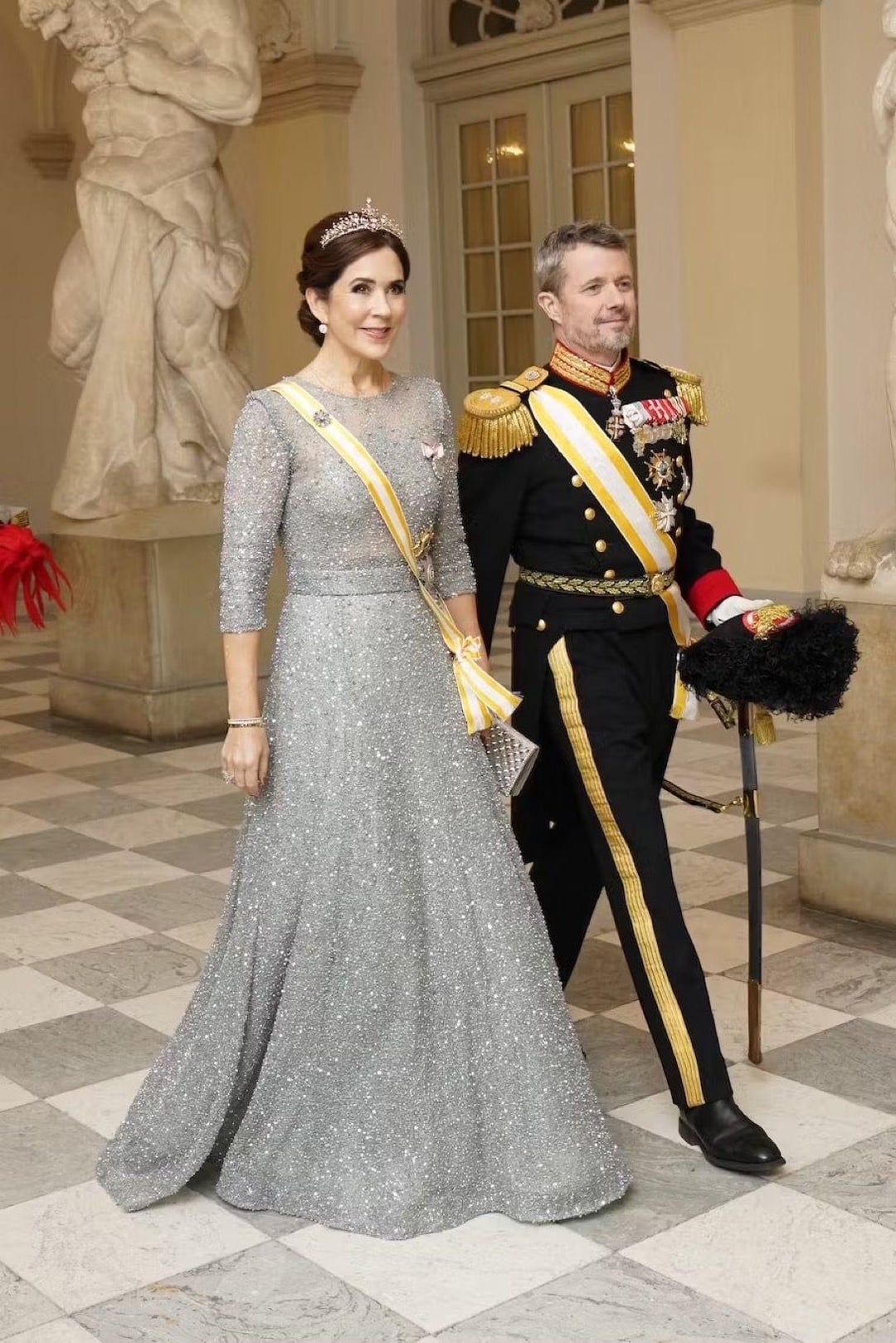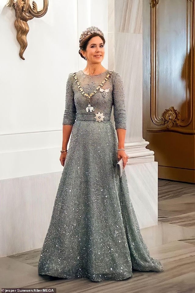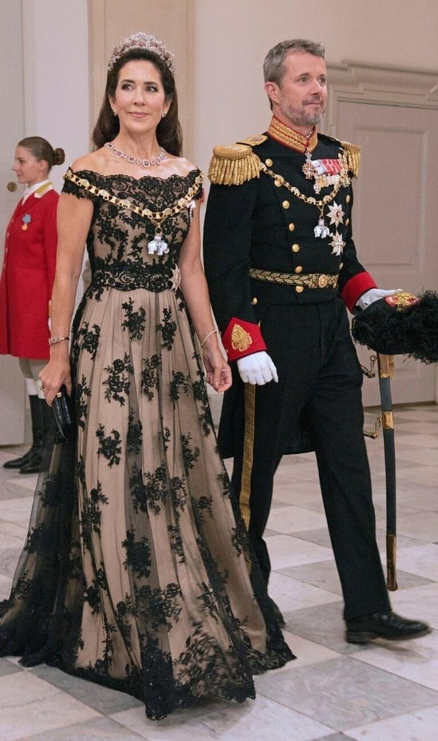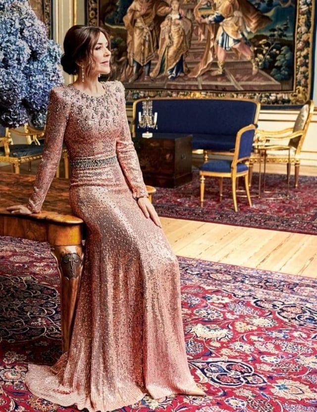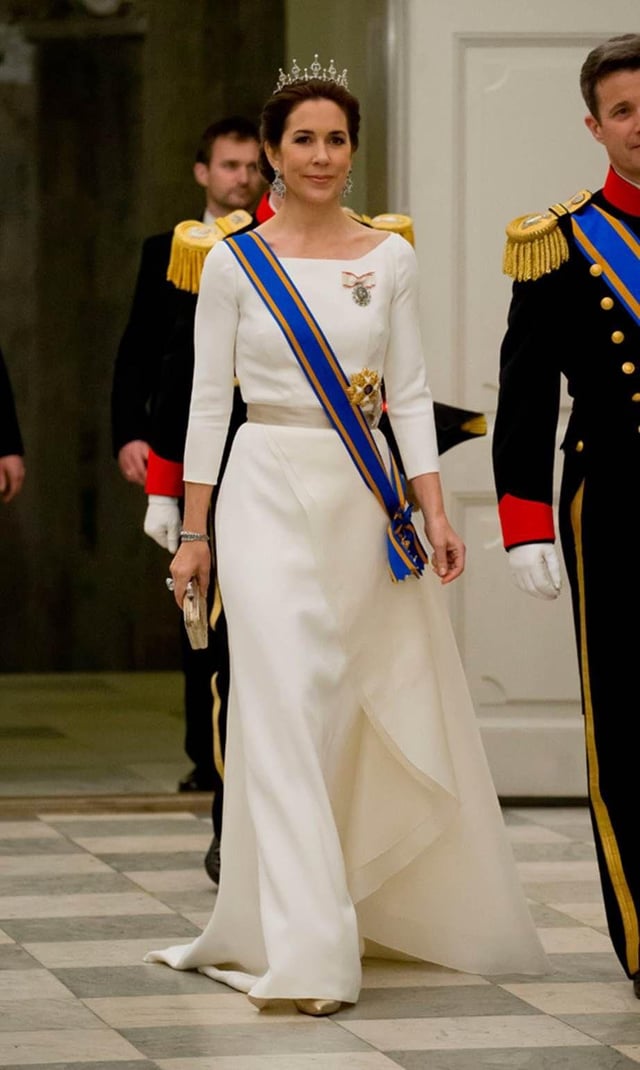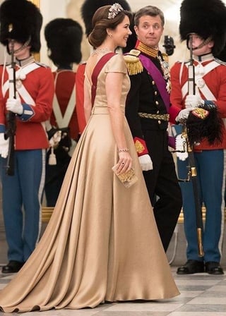 Mary in shades of red is always a hit. Her first royal gala gown is amazong except the bow part.