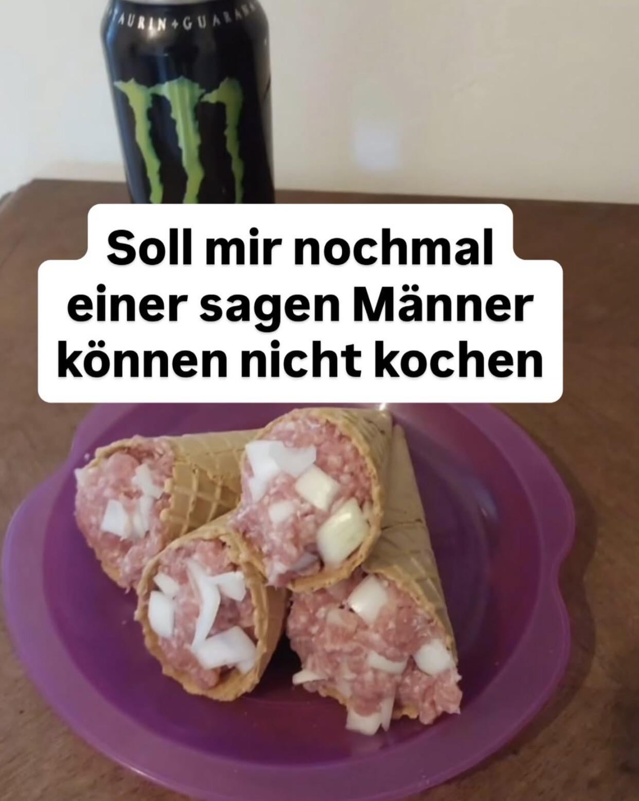 Ist eigentlich gar keine so schlechte Idee, doof halt nur, dass handelsübliche Eiswaffeln zu süß dafür sind.