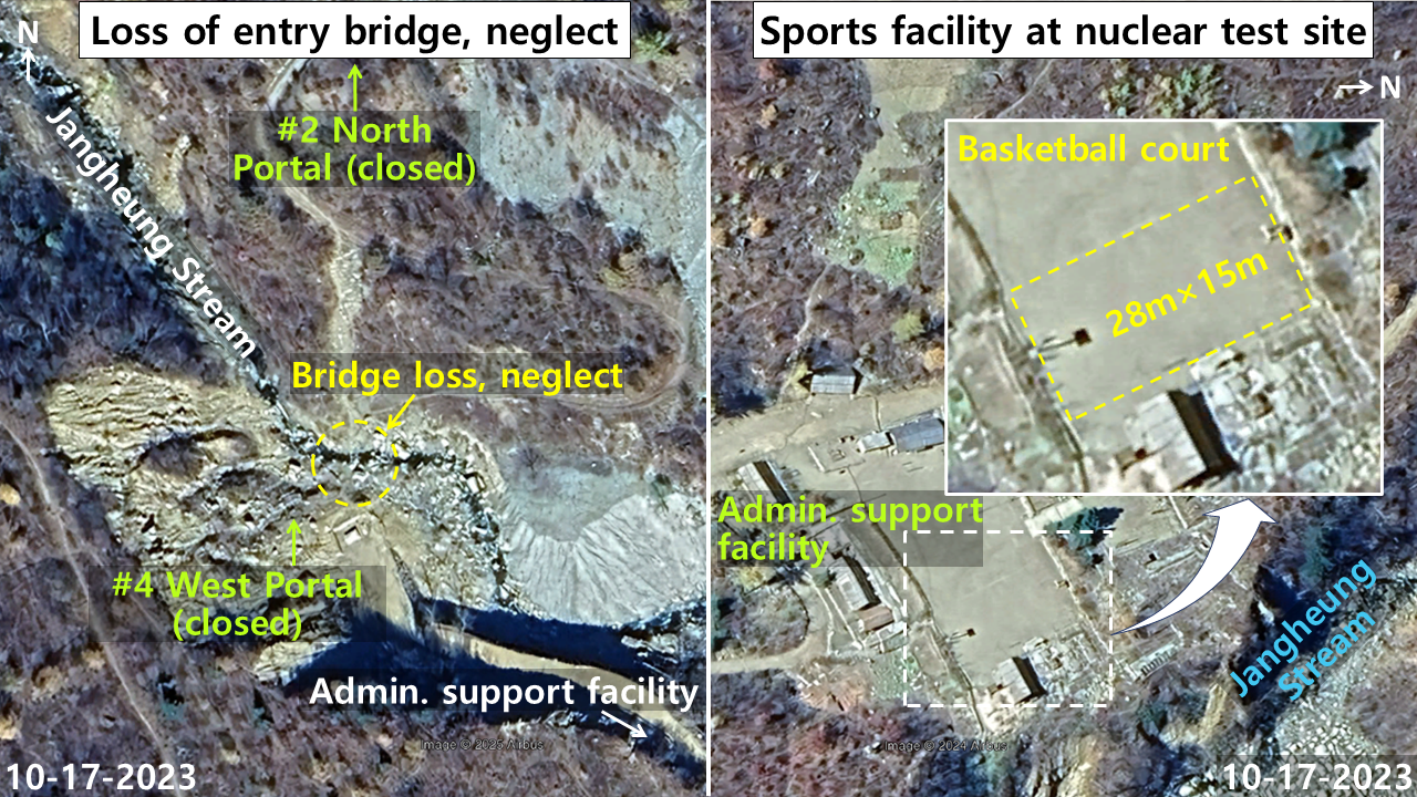 Tunnel No. 3, one of the Punggye-ri nuclear test site’s four closed tunnels, was reopened in 2022 and remains usable at any time. No signs of an impending nuclear test were detected in the satellite images. (WorldView-2)