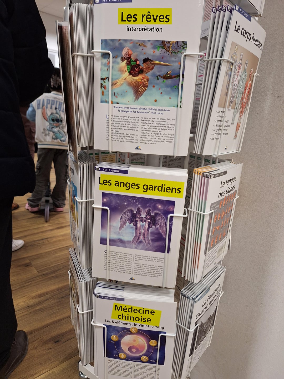 4. Je sais pas ce que le guide “Le corps humain” contient mais s’il est entre l'”homéopathie”, “les anges gardiens” et “les pierres qui guérissent” je suis pas sûr que le contenu soit davantage scientifique que le reste. Je serai pas surpris si dans “les langues étrangères” il y avait des incantations vaudous. Et puis dans l’histoire de France le point crucial c’est surement de savoir où est caché le trésor des templiers.