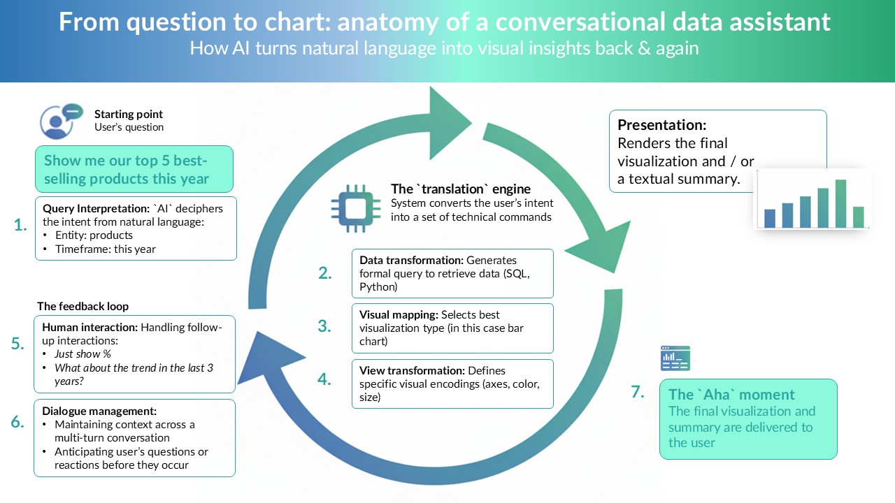 The value proposition of V-NLIs is best understood by contrasting the conversational paradigm with traditional data analysis workflows. These are presented in the infographic below.