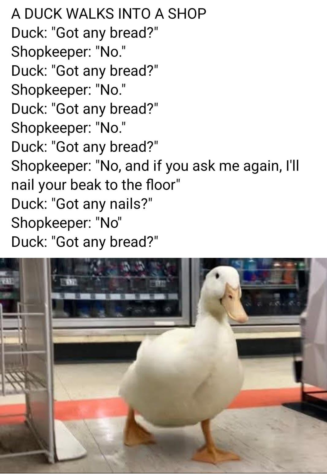 The third duck says, ‘ I’m goin’ as quack as I can!’.