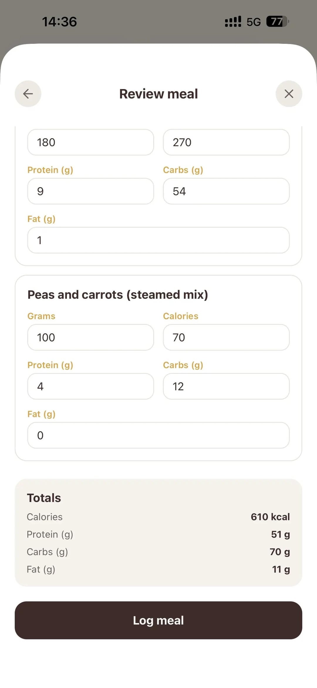 One of the features I added was being able to take a picture of already cooked food in their respective and pans and asking the app to give me the amount of grams I need of each cooked food to reach 500 calories and 30g of protein for example, this really helped stay on track on my diet.