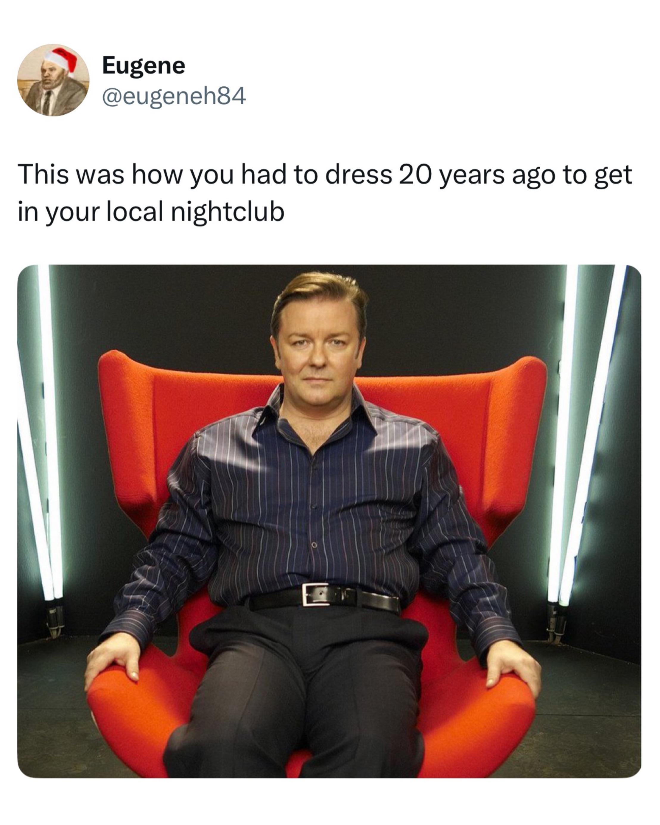 I used to dress smarter to go out and get pissed than I do to go to work these days.