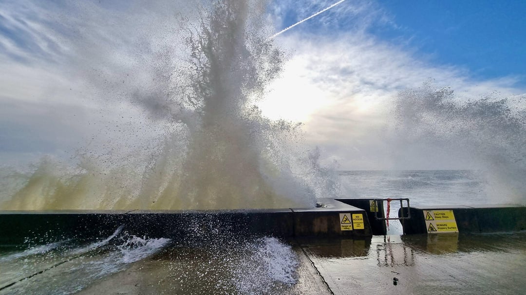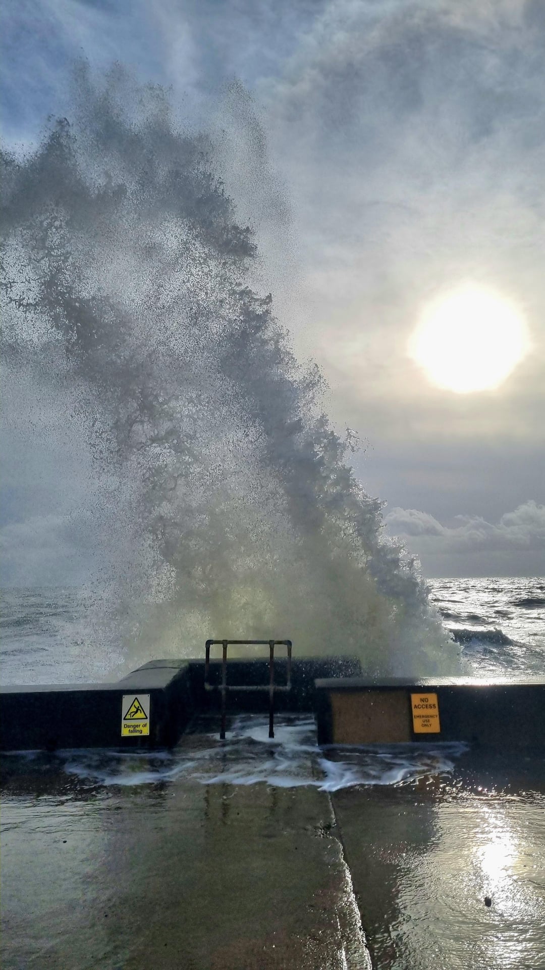 Caught some impressive waves crashing into the seawall by the undercliff walk near Peacehaven on thr south coast at the weekend.