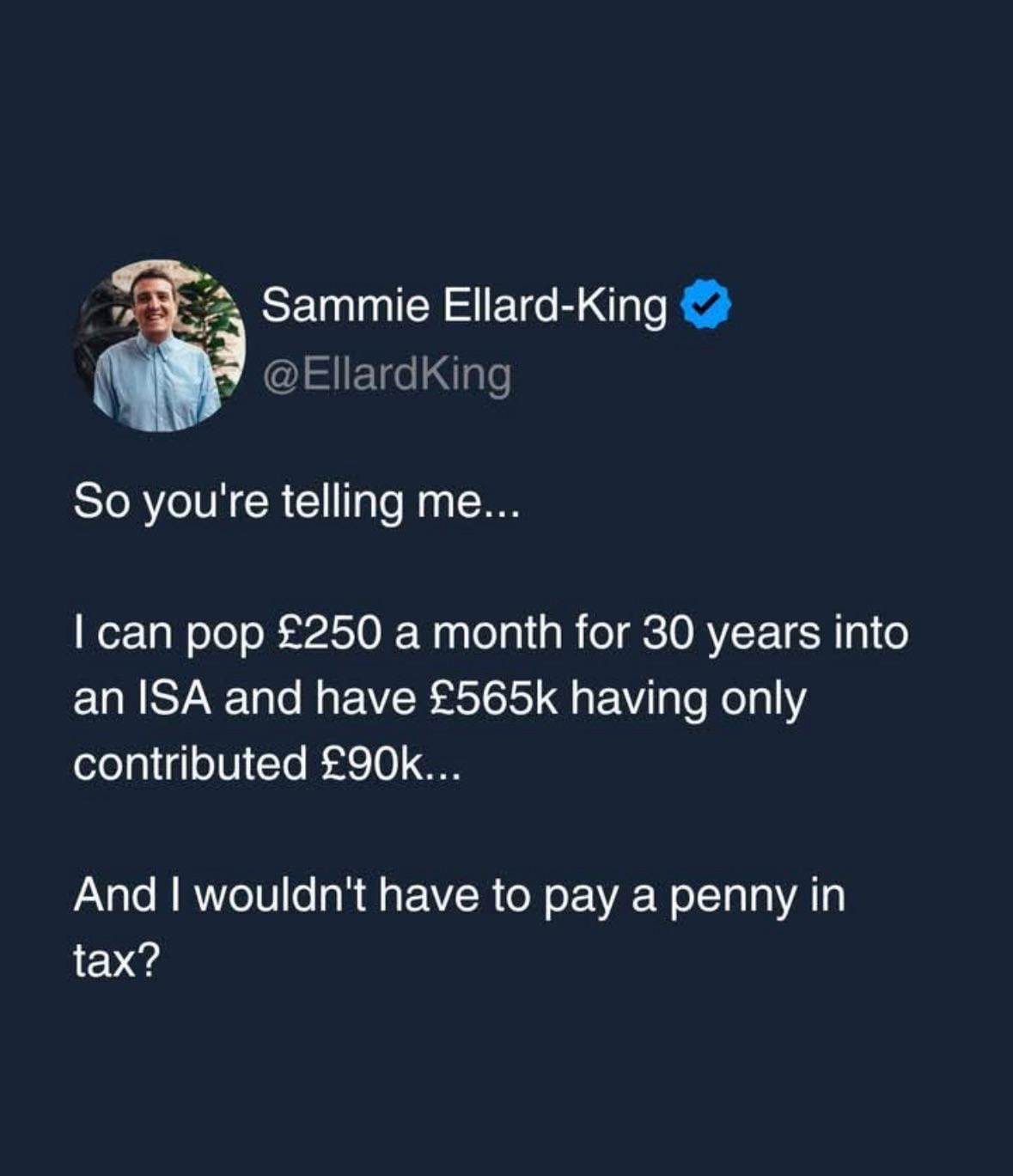 So many people commenting “who has £250 spare each month!?!?!” Obviously if you’re really struggling £250 is going to be impossible, but loads of people could at that much aside monthly and don’t.
