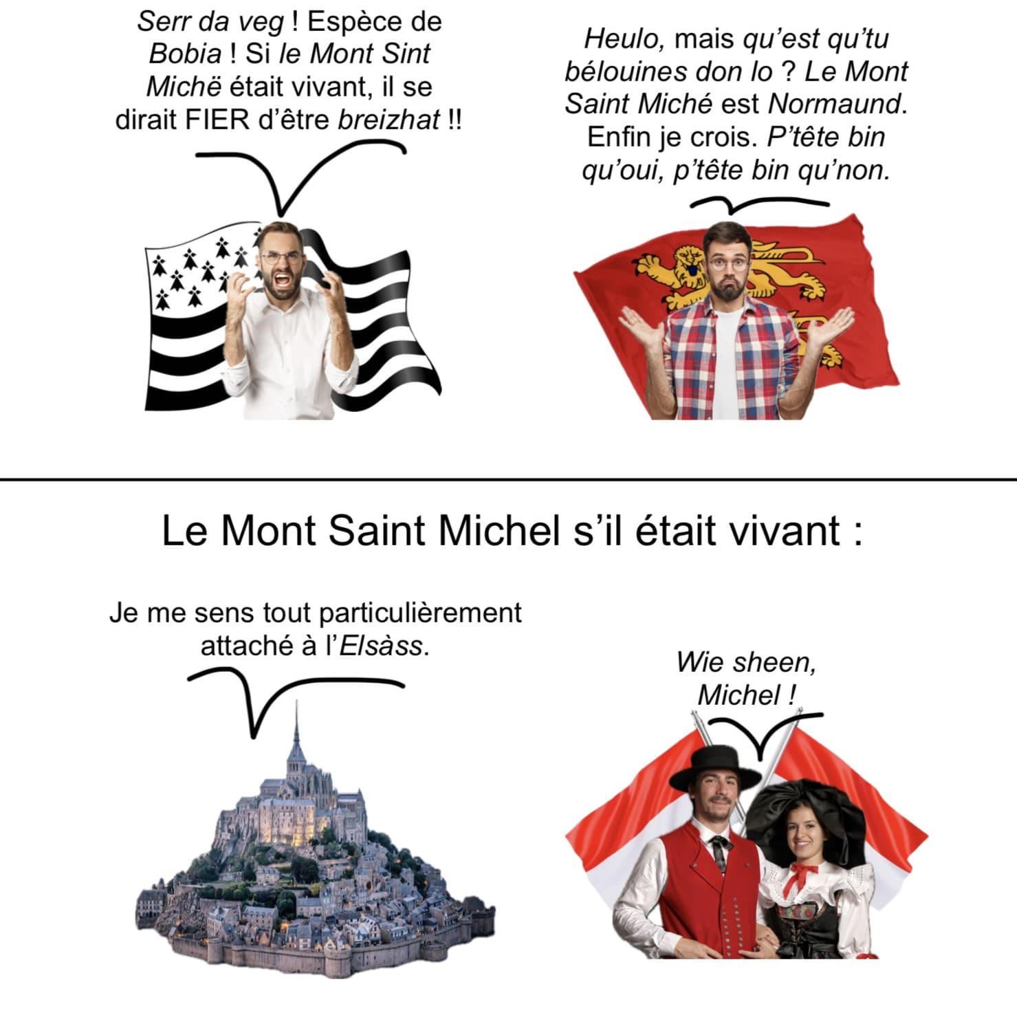 Les débats autour du Ont-Saint-Michel être comme : by uwu_01101000 Tags:franceMemesrance 4 comments Pourquoi l’Alsace? Il pourrait se sentir creusois par exemple. Vazy, donnez le aux Normands, ils se sont fait carott’ leurs îles par des rosbifs. La honte sur leur kabig. ce moimoi est parfait parce que je suis elsassois Il y a déjà un Ont Saint-Michel en Retagne : celui de Brasparts. Comments are closed.