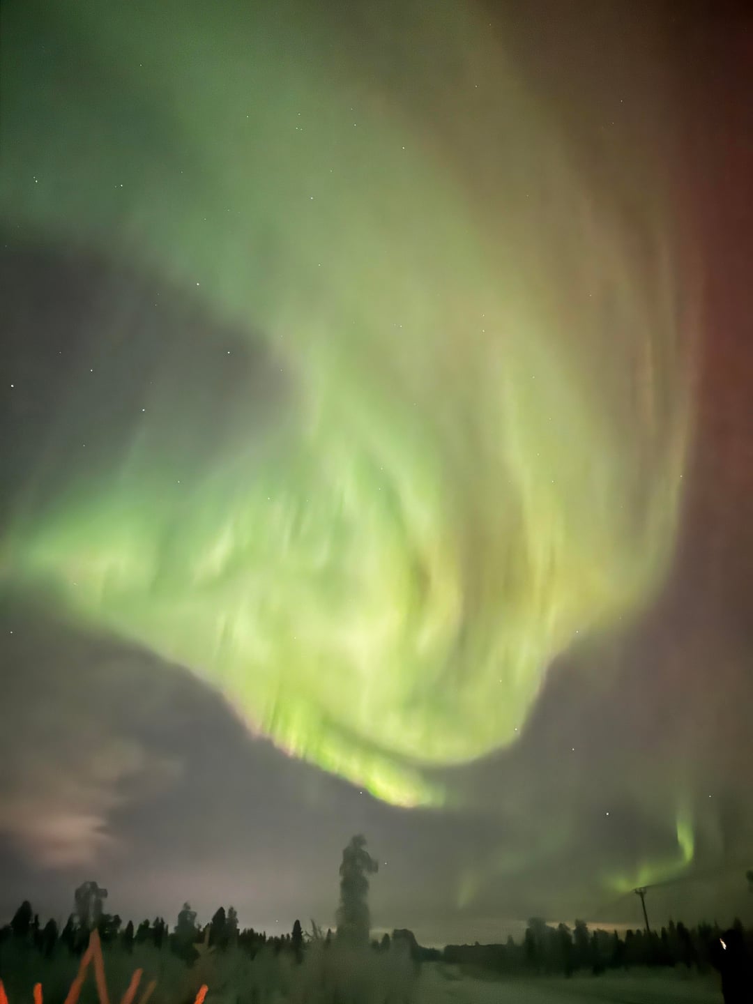 Saw vibrant greens overhead; Pajala’s low light pollution boosts odds. Tip: Aurora app & warm clothes!