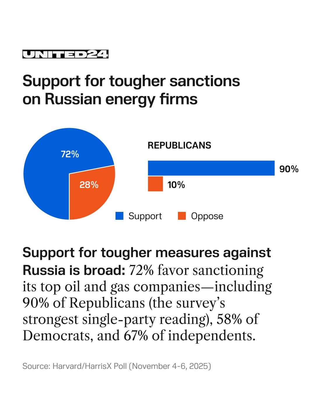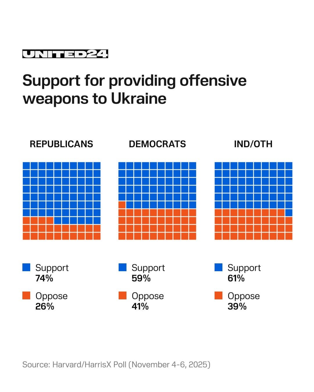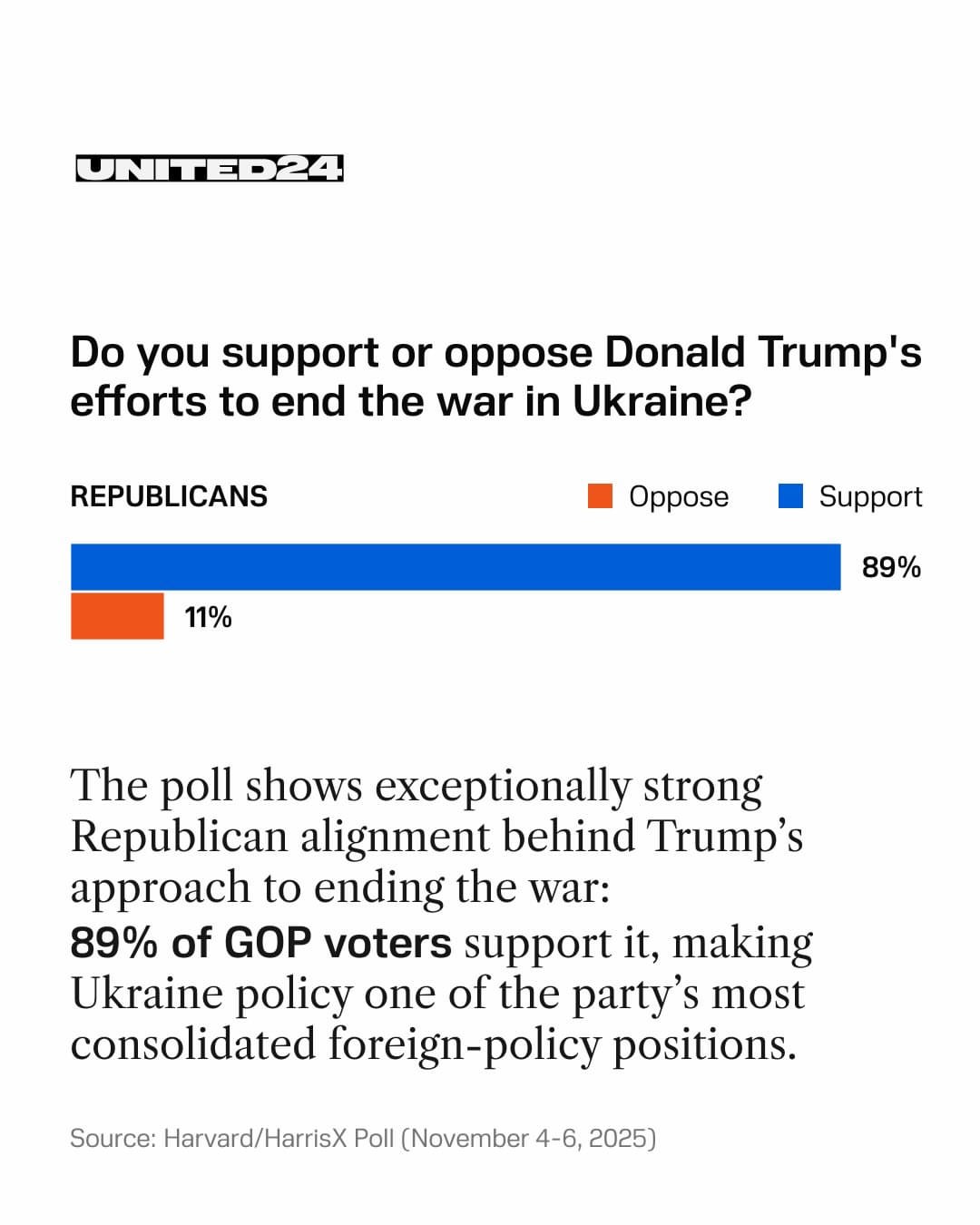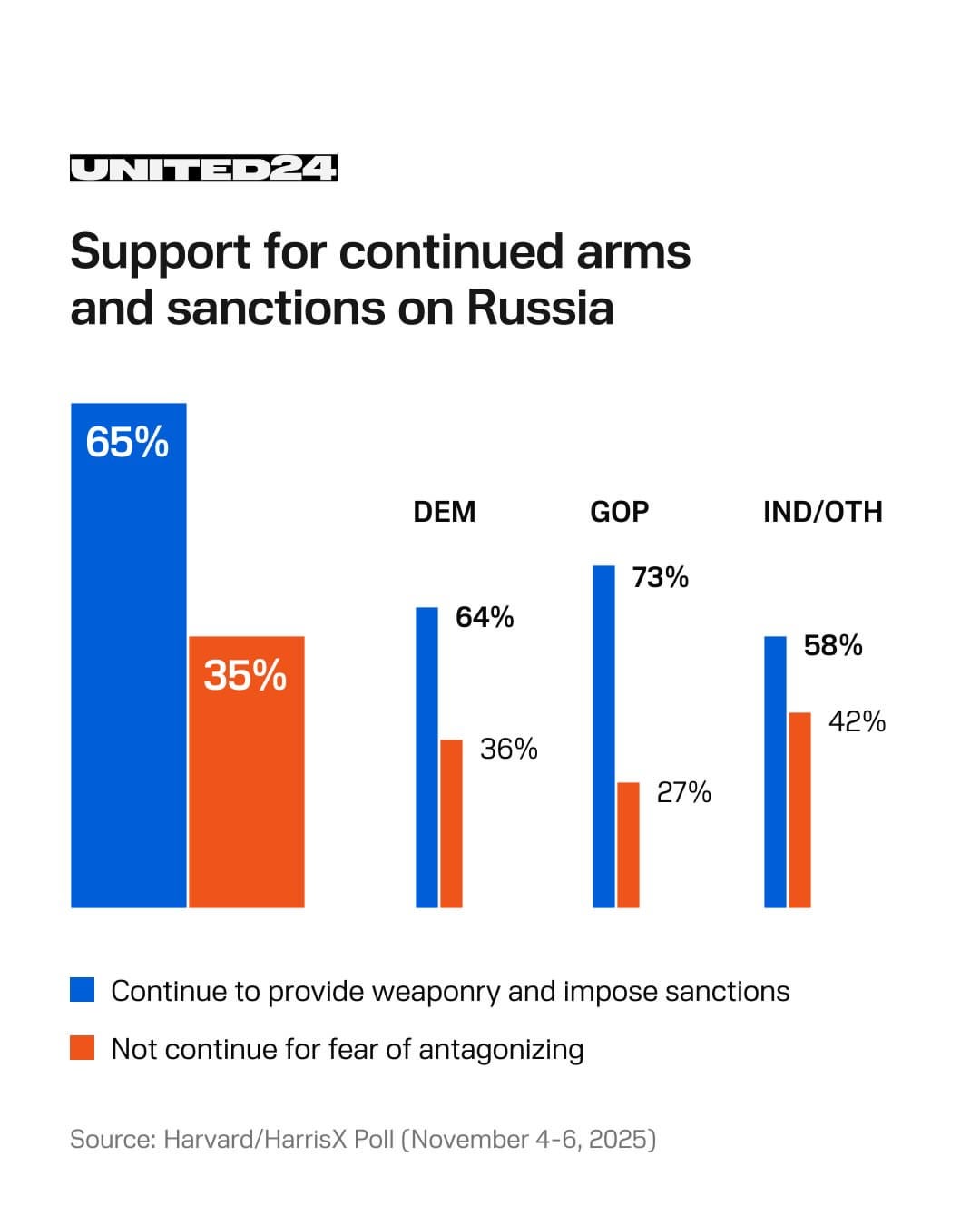 A new Harvard/HarrisX poll shows that 65% of US voters — including 74% of Republicans — support continuing to arm Ukraine and maintain sanctions on Russia if Moscow refuses to negotiate