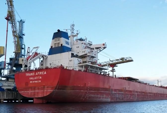 The freighter in port when “Aktuaalne kaamera” visited, the Trans Africa, a Maltese-flagged ship, accounts for around a quarter of this total alone.
