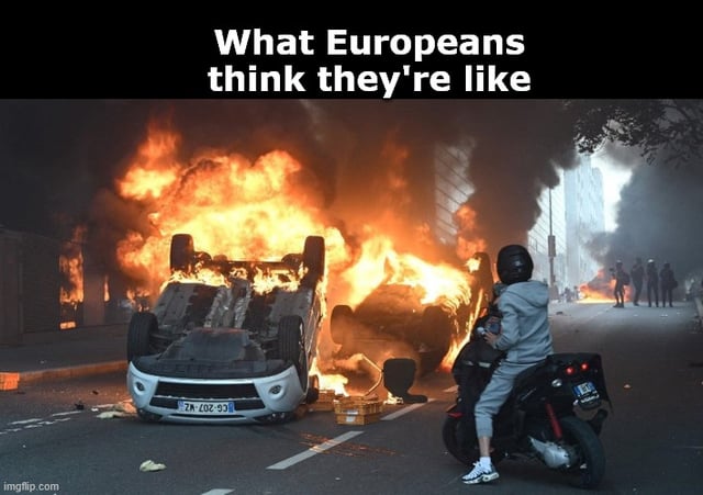 Surely the French should be the ones with a car on fire? That’s the national pastime.