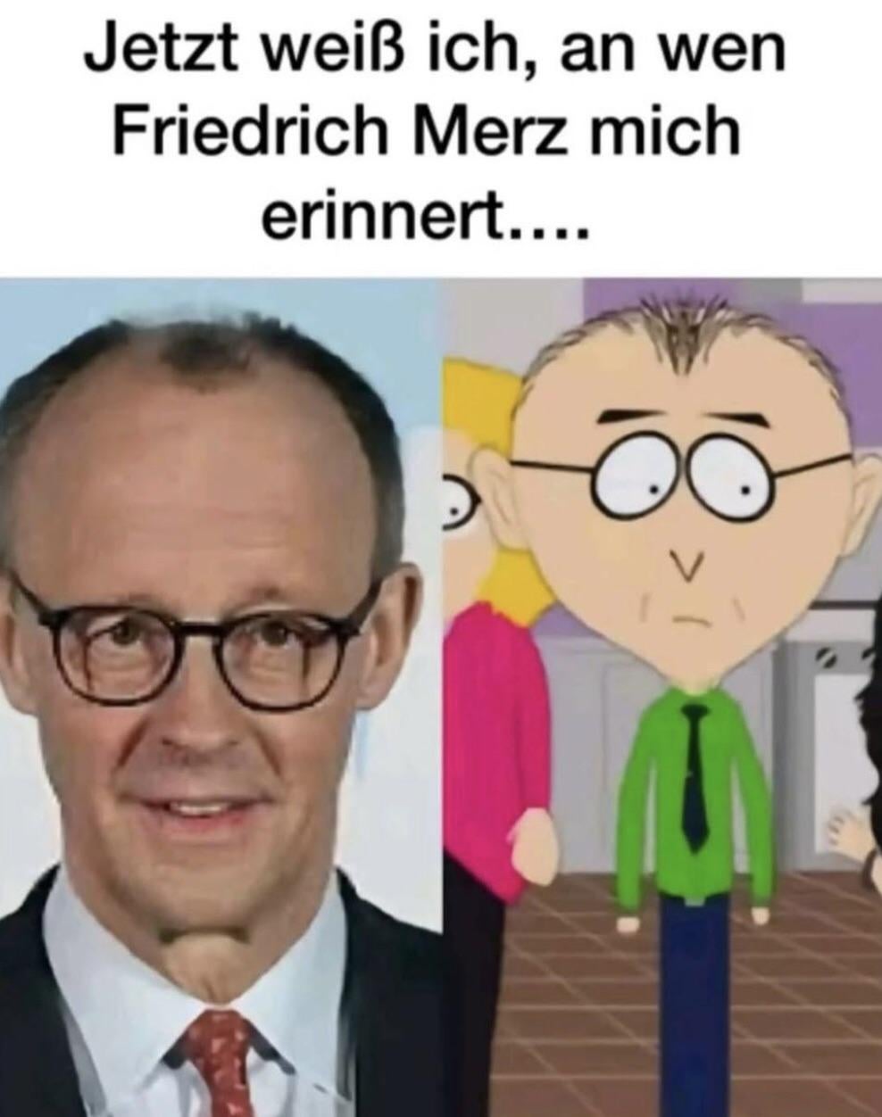 Dazu sage ich nichts 🥹 by dreamlilacsoul Tags:Deutsche MemesMemes 30 comments Solche Vergleiche sind unangebracht, mhkay! Drogen sind schlimm, mkay Was hat dir Mr. Mackey getan das du ihn so runtermachen musst? Mkay Jetzt ist die frage wer von wem abstammt Für mich eher Mr. Burns. Und Amthor ist Smithers. M’kay Arbeitslose sollten verhungern Mkay MMMMMMKAAAAAAAAAAAAAY Stadtbild und so M’kay  “Mr. Mackey?” “Ja Eric?” “Was ist ein grenzdebiler Wichslappen”? “Was? Wieso fragst du mich sowas?” “Nun Casey Miller hat ihr Toupee gerade so bezeichnet” Hey das ist nicht cool mhkay Drogen sind schlimm, mkay! Wie kannst du nur?? Mr. Mcay interessiert sich für die Kinder Naja ob er pedovil ist lässt sich raten und sonst fehlt der luftbalonkopf. was hat er sich nur gedacht, im charakter editor seinen skin so zu erstellen Brokkoli ist schlecht Mkay Die Bürgergeldempfänger sind ganz schlecht mkay? Wir müssen Leistungen streichen mmmkaaayyy? Rechts ist ein liebevoller und teilweise sehr nachvollziehbarer Charakter zu sehen und links ist das reine Böse. Freu dich Schon mal aufs SEK 😂 lmao , who edited it?  Merz ❤️  Für mich links im Bild zu sehen – im Gespräch mit Philipp A. Also mich erinnert er ja eher an Mr. Burns… Mr. Mackay wäre ein deutlich besserer Kanzler Ahahahahaha ja das stimmt 😇😇 [Bruce Stallion – Drugs = Bad (Squire of Gothos Remix)](https://youtu.be/e0kuFt1beEg?si=1weQC-JNIfX7jQQT) Mkay! “Das Stadtbild gefällt mir mal so gar nicht mhkay?” Das Bürgergeld muss gekürzt werden mkay? Comments are closed.