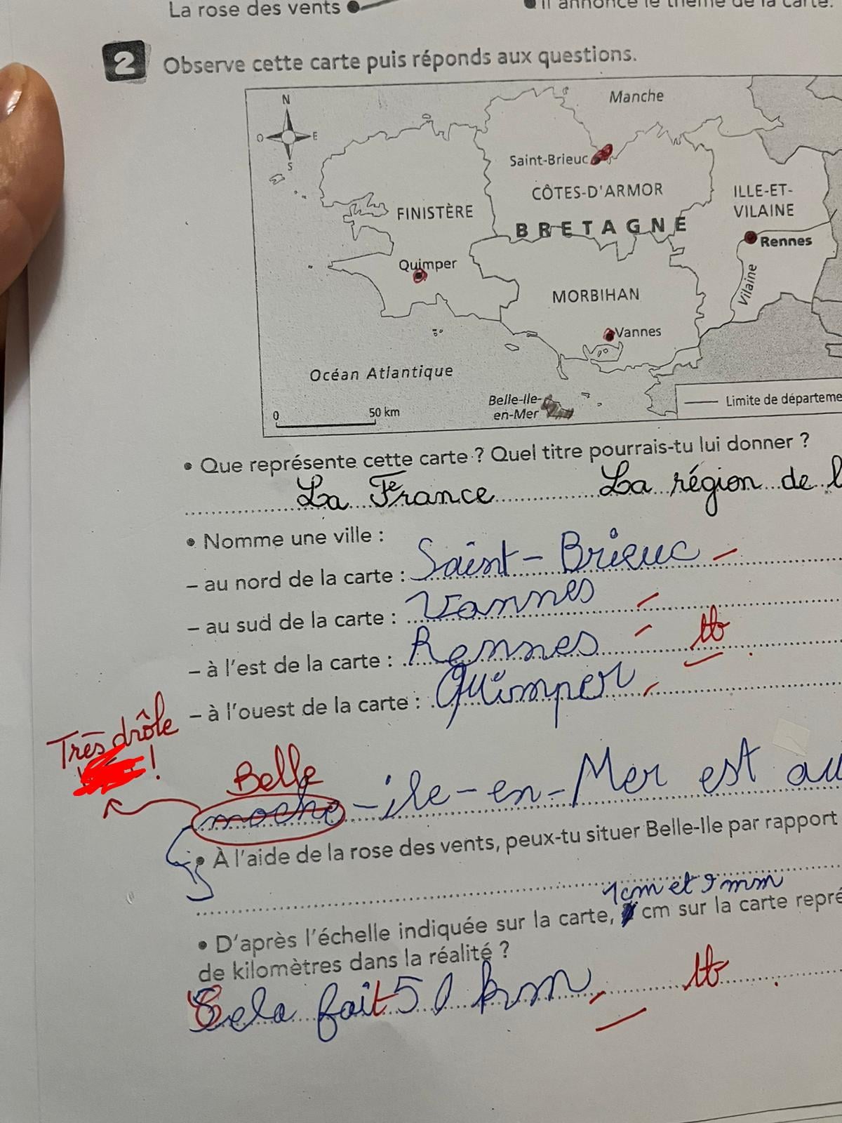 Oui c'était le contrôle de géographie de ma fille en CE2