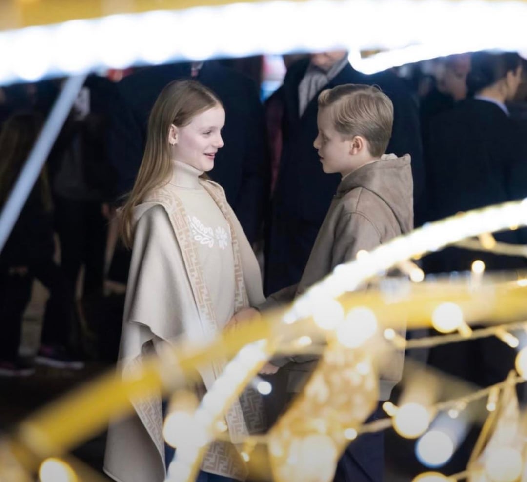 3. The twins are looking so grown! Gabriella is so stylish with her Fendi cape/poncho.