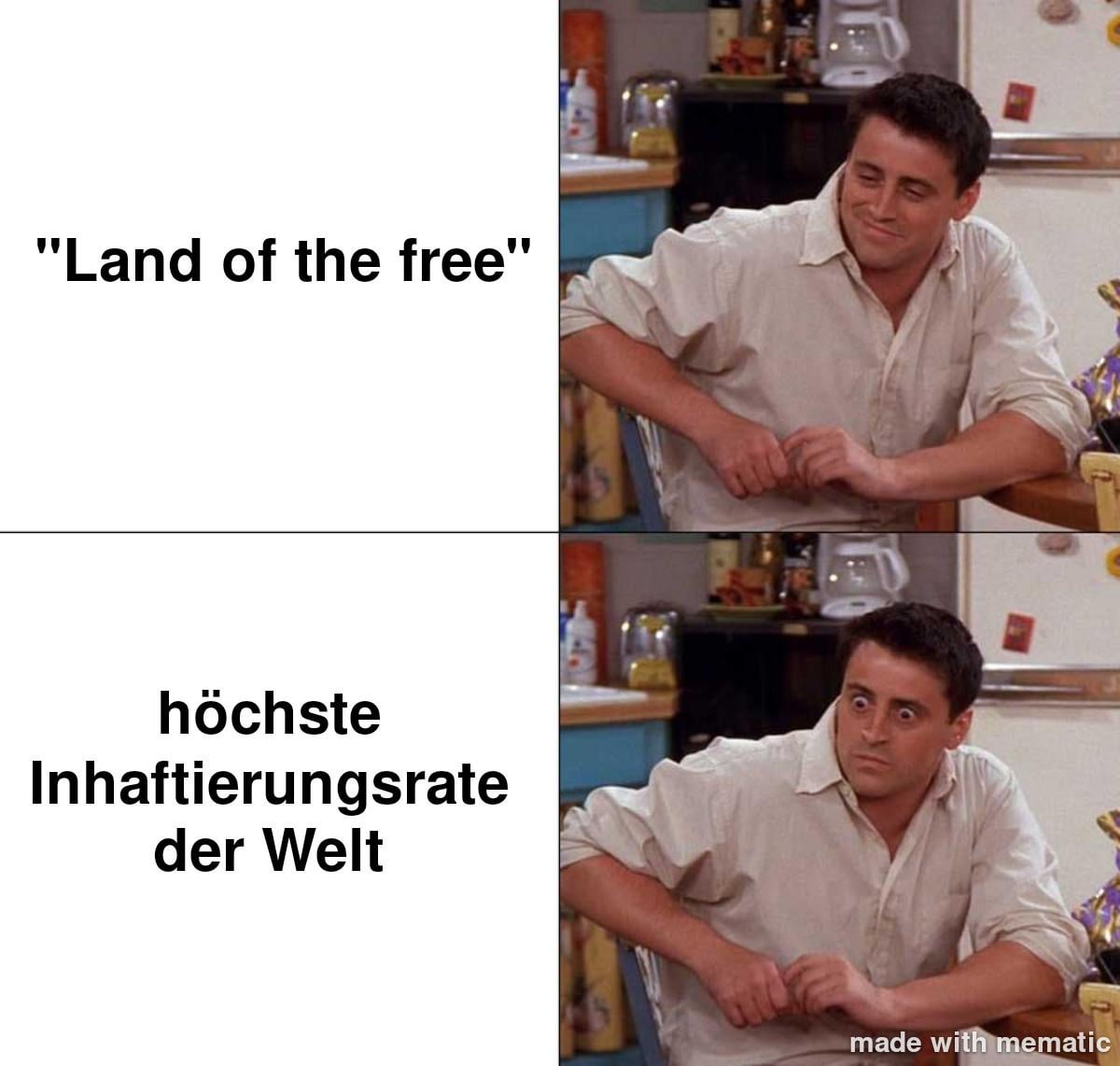 Check vor allem mal wie die Inhaftierungsrate mit Hautfarbe korreliert. Bleibt einem die Spucke weg.