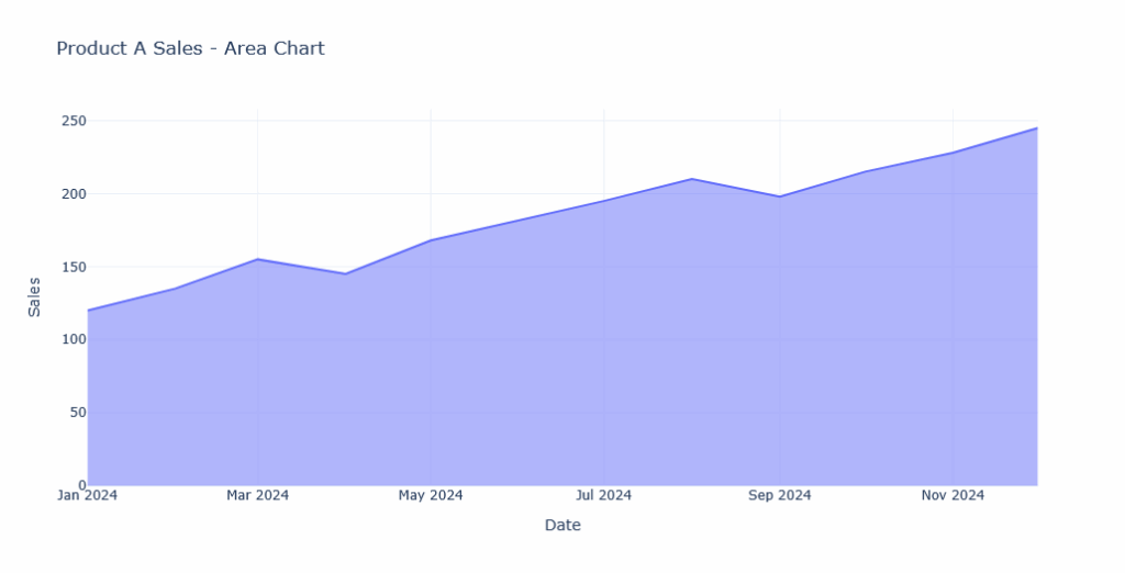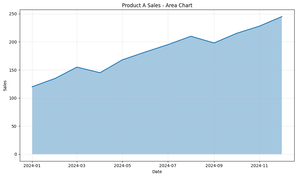 ax3.set_title(‘Product A Sales – Area Chart’)
