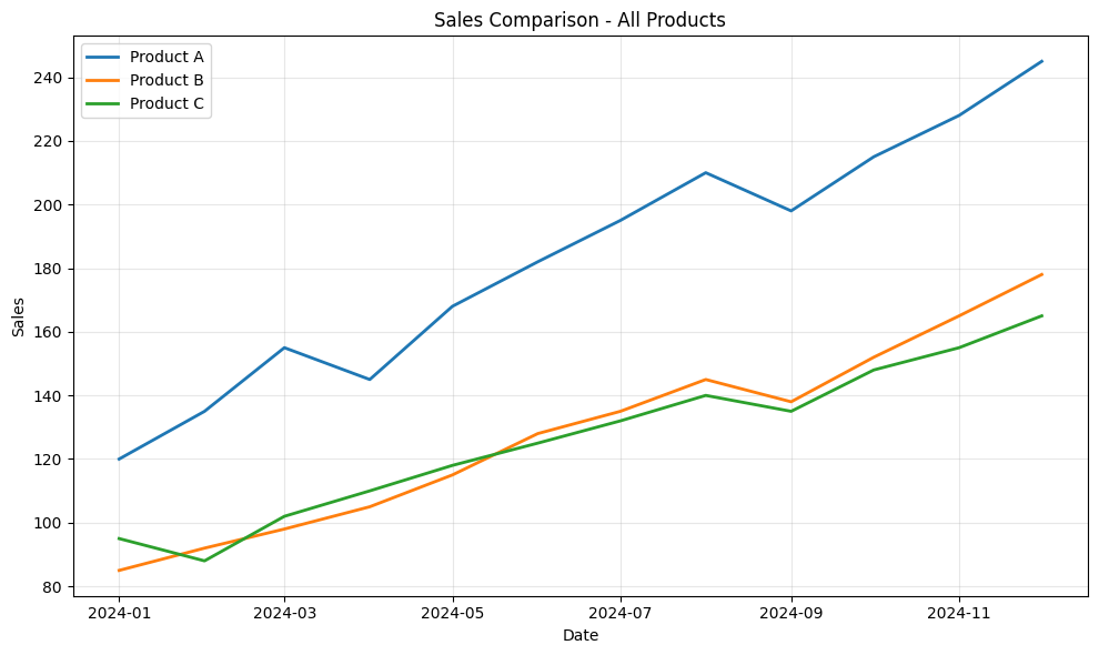 ax2.set_title(‘Sales Comparison – All Products’)