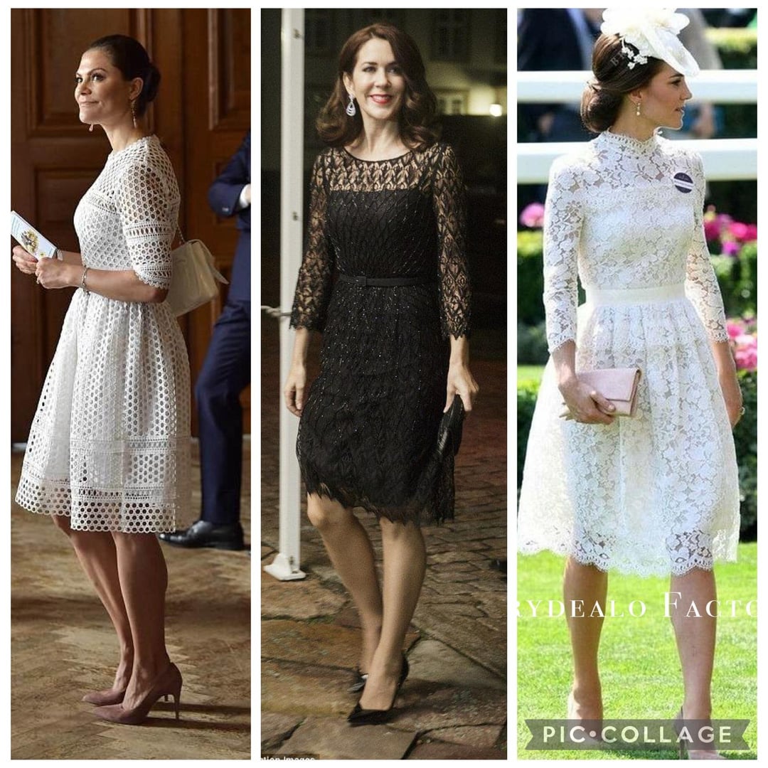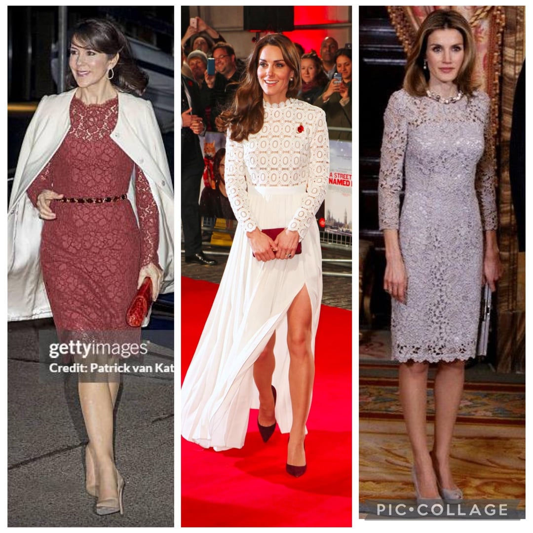 TIL I don’t love an all-over lace dress. However, there are a few good ones here. Overall I’d say Letizia wins with the most good looks. But Madeline wins overall with just the one. Stunning! I also like QEII in that short sheath dress with short-sleeved jacket. Very stylish. Kate’s best lace look in this group is th eone from the recent state dinner.