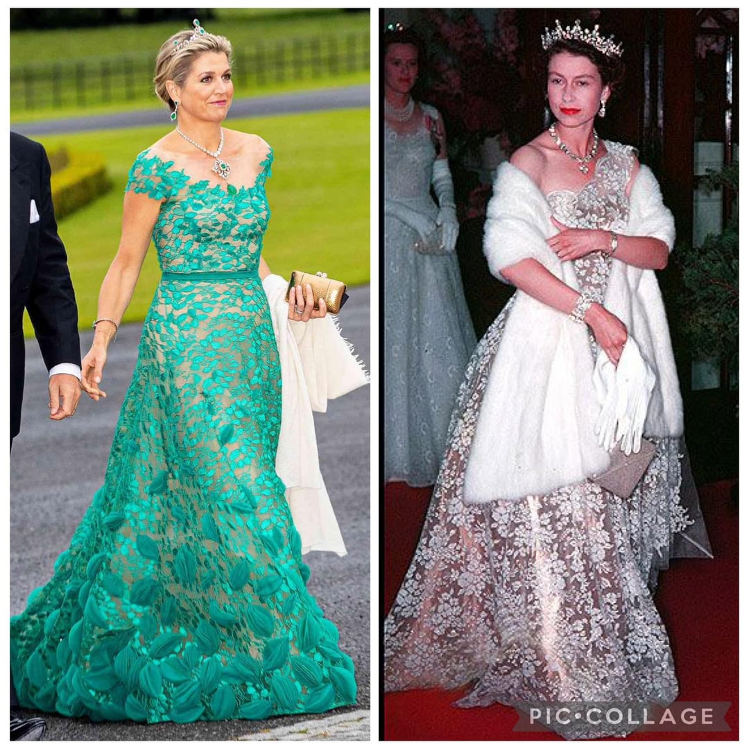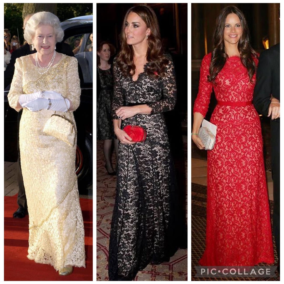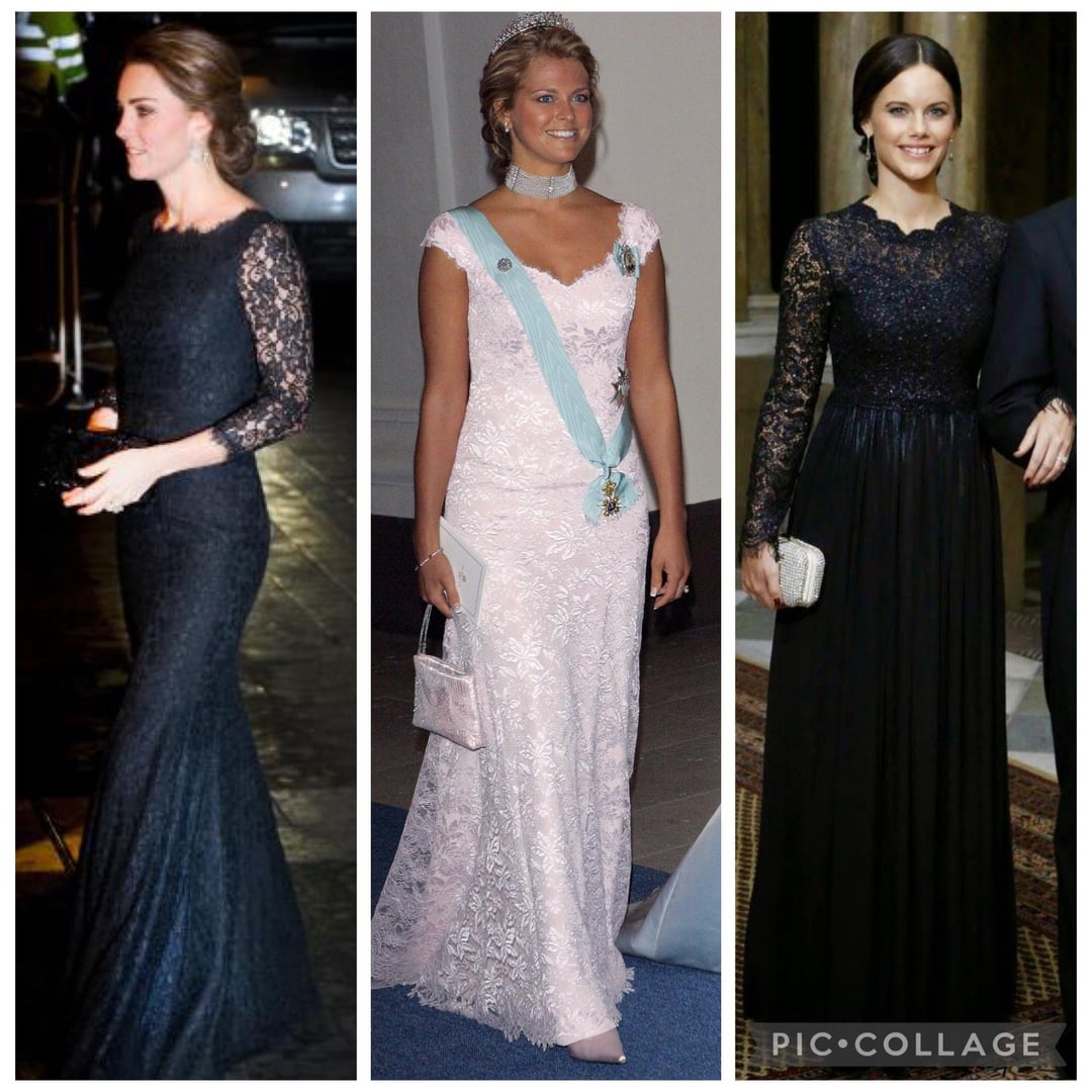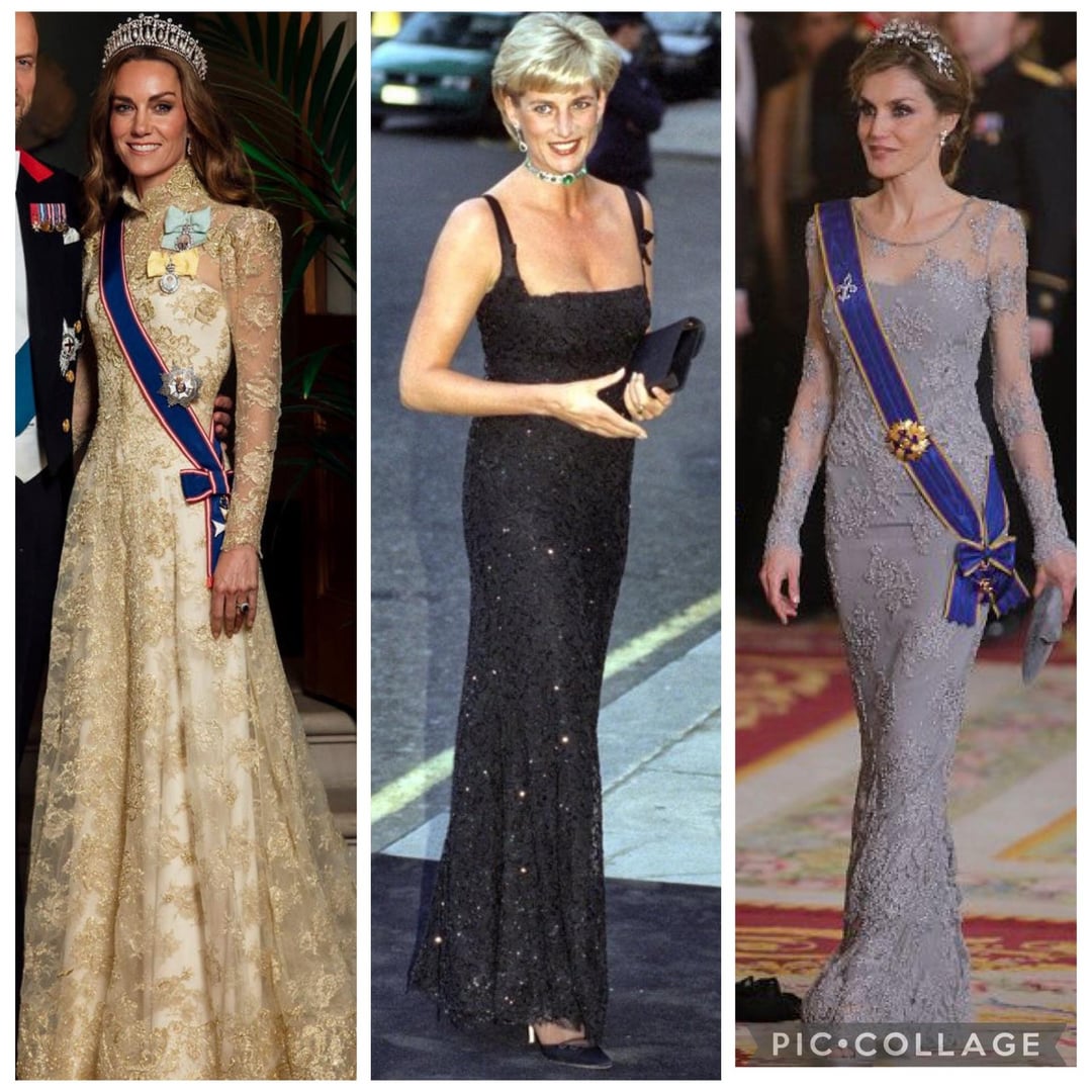 Kate’s green, gold, and black are all stunning. Like Diana’s white and also black lace gowns too.