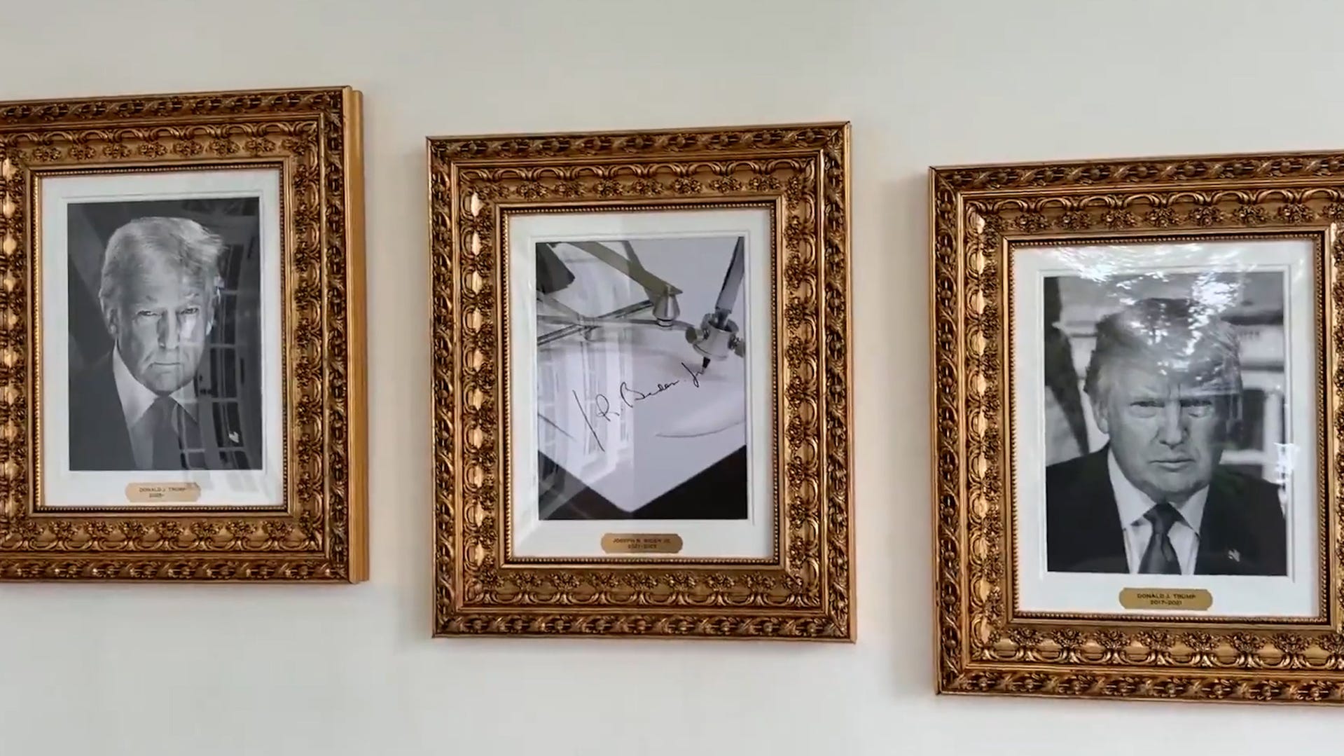 President Donald Trump mocked Joe Biden with a display of his autopen signature at the “Presidential Walk of Fame” in the White House’s West Wing.