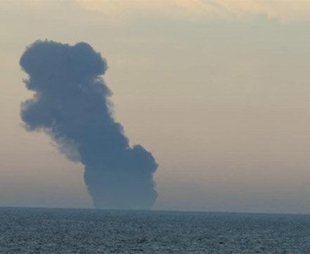 Unconfirmed media reports immediately began speculating that it was a coordinated maritime drone attack. Others suggested that the Kairos, which was underway, had struck a mine. Pictures released showed a large plume of smoke, and later the tanker was on fire as the crew was evacuated. The Virat was holding off the coast of Turkey “awaiting orders.”