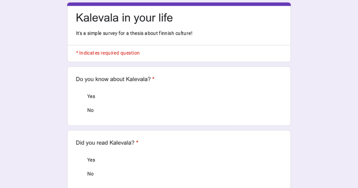 Hello! I'm currently writing a thesis about Finnish culture as a whole and would really appriciate the help (and maybe sharing with a friend or two)!