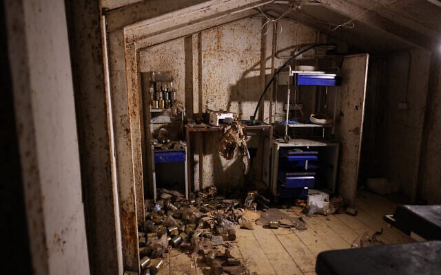 This photograph taken during a press tour organized by the Lebanese army shows a room inside an abandoned tunnel said to have been used by Hezbollah, in a mountainous valley on the outskirts of the southern village of Zibqin, on November 28, 2025 (ANWAR AMRO / AFP)
