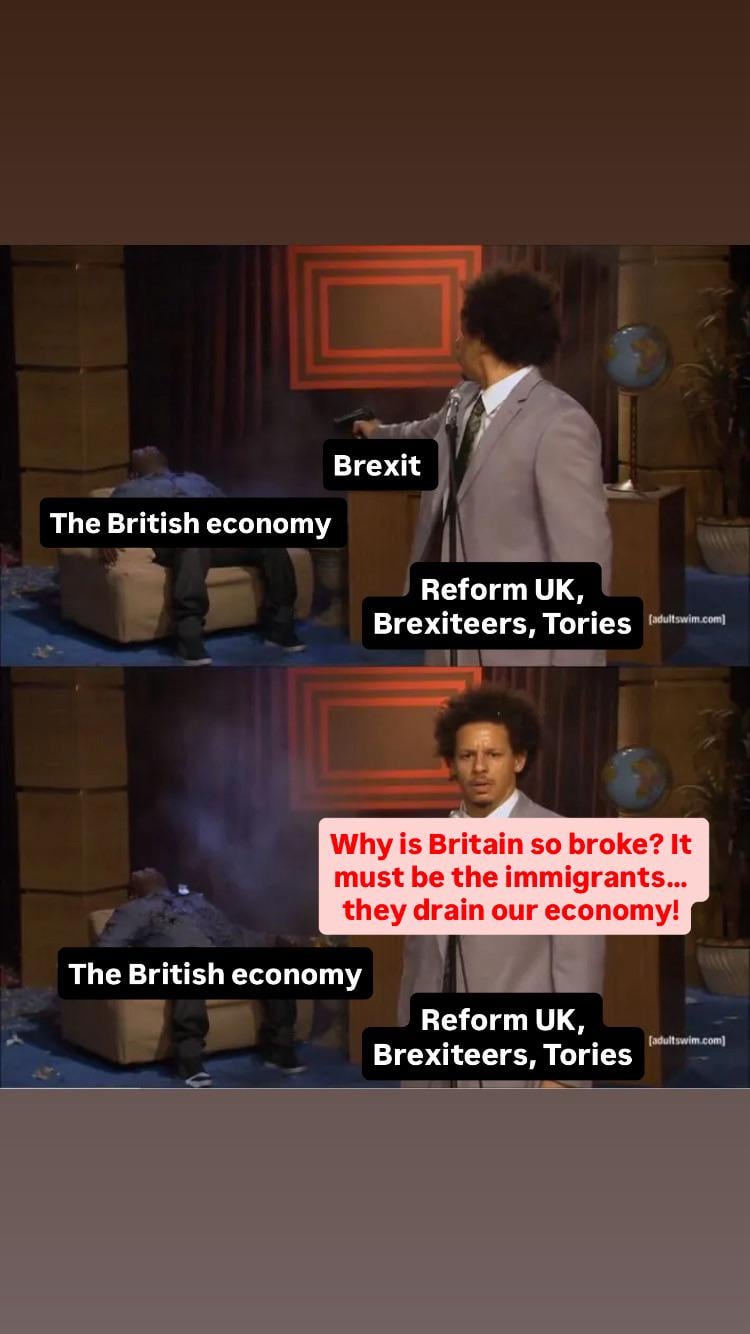 Brexit also literally is responsible for the current situation we have surrounding immigrants, people got played so hard and now they’re being convinced to do it all again based on their own action. It’s like punching yourself in the face and then getting angry at your fist.