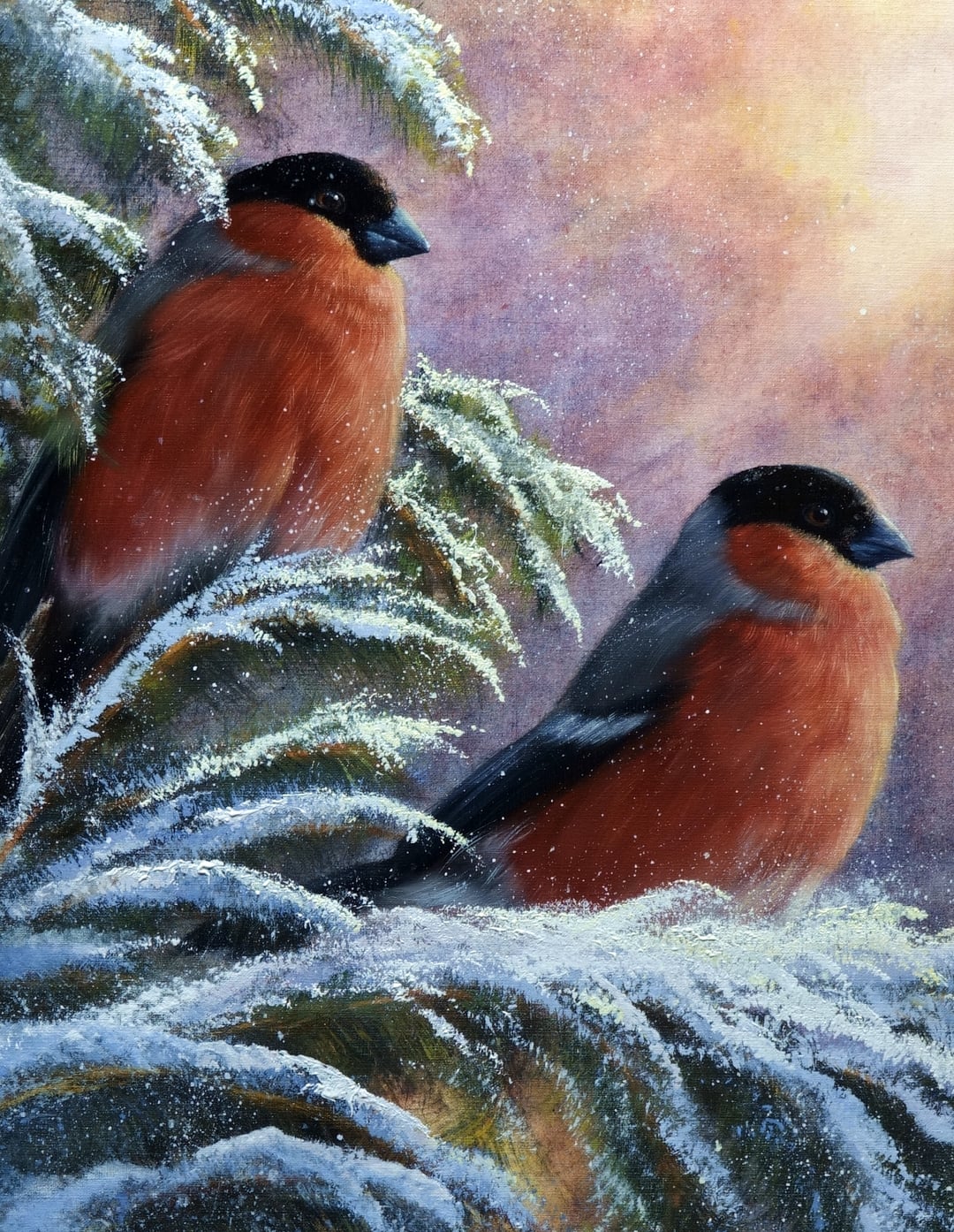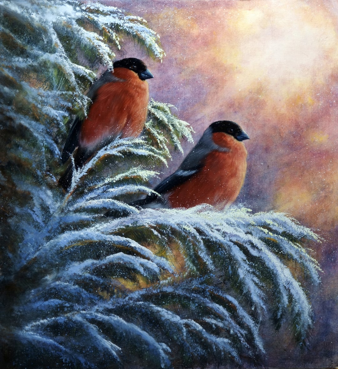 Passade på att måla två domherrar i vinterskrud lagom till första advent. Önskar er alla en trevlig advent.