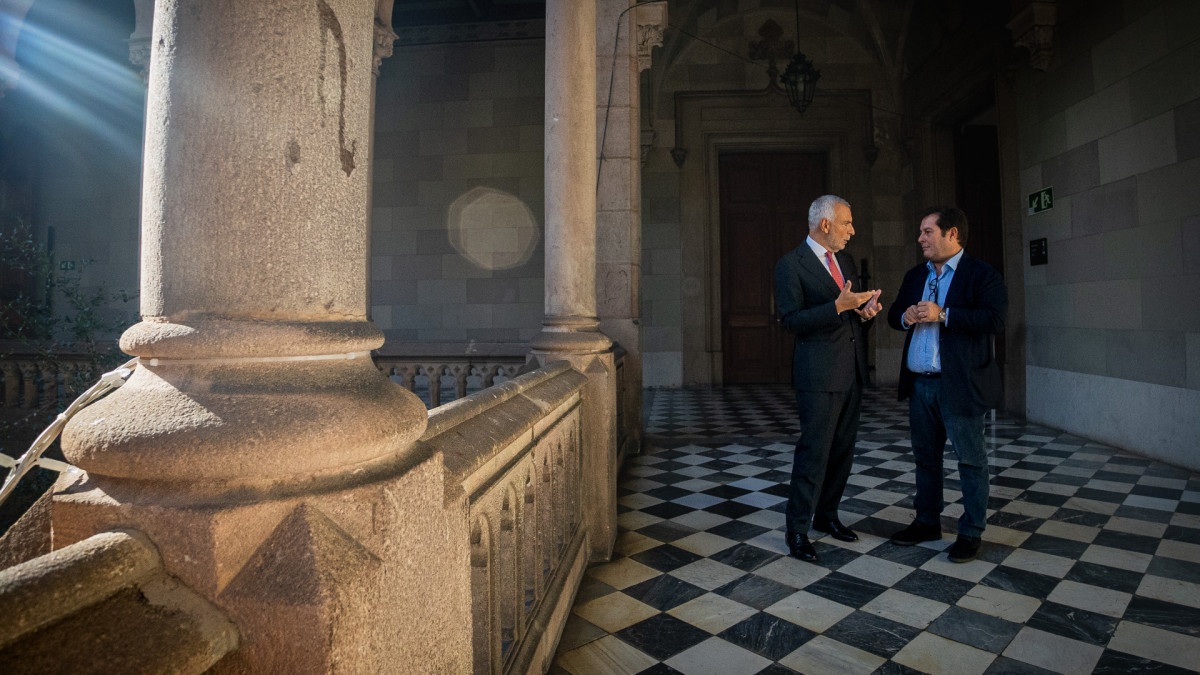 Sannino and López Plana strolling through the University of Barcelona campus. Photo: Agenda Pública / Tsun Ho