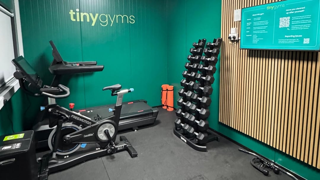 The tl;dr version: TinyGyms is a small pod with a treadmill, bike and weights…but unlike other gyms you get the whole place to yourself. Available 24/7 with access via scanning your phone at the door.