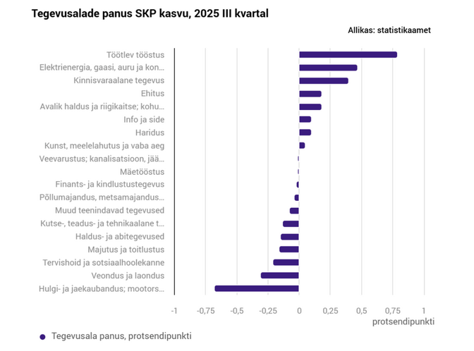 Tegevusalade panus SKP kasvu, 2025 III kvartal Autor/allikas: Statistikaamet