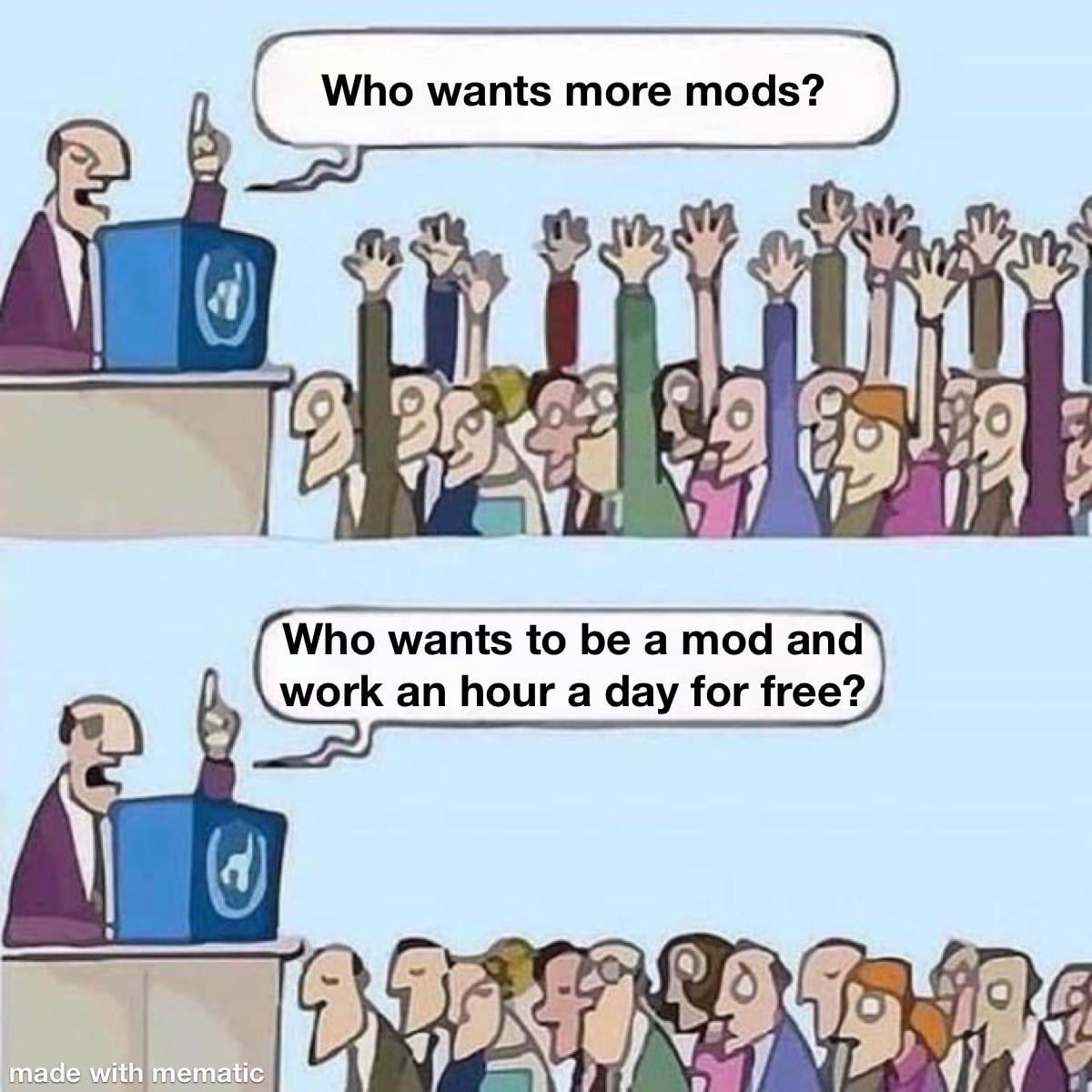 The posts that other person highlighted when calling out for more mods, well the first time I saw them was on that post , suggesting we don’t really have a problem, or not a severe one.