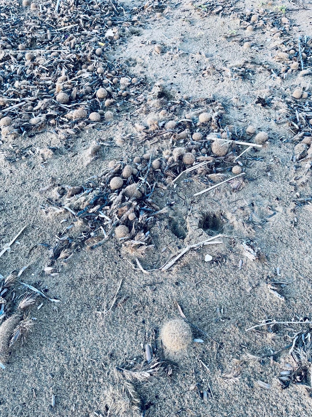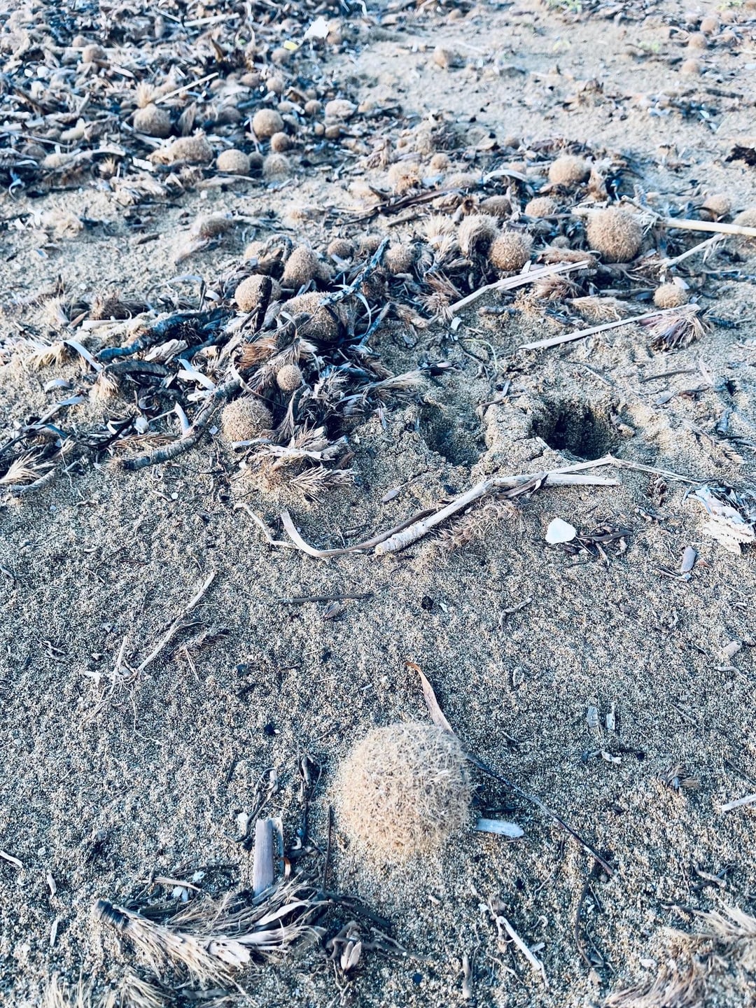 Könnten Neptunbällchen sein. Zusammen gerolltes Neptungras (Seegras).