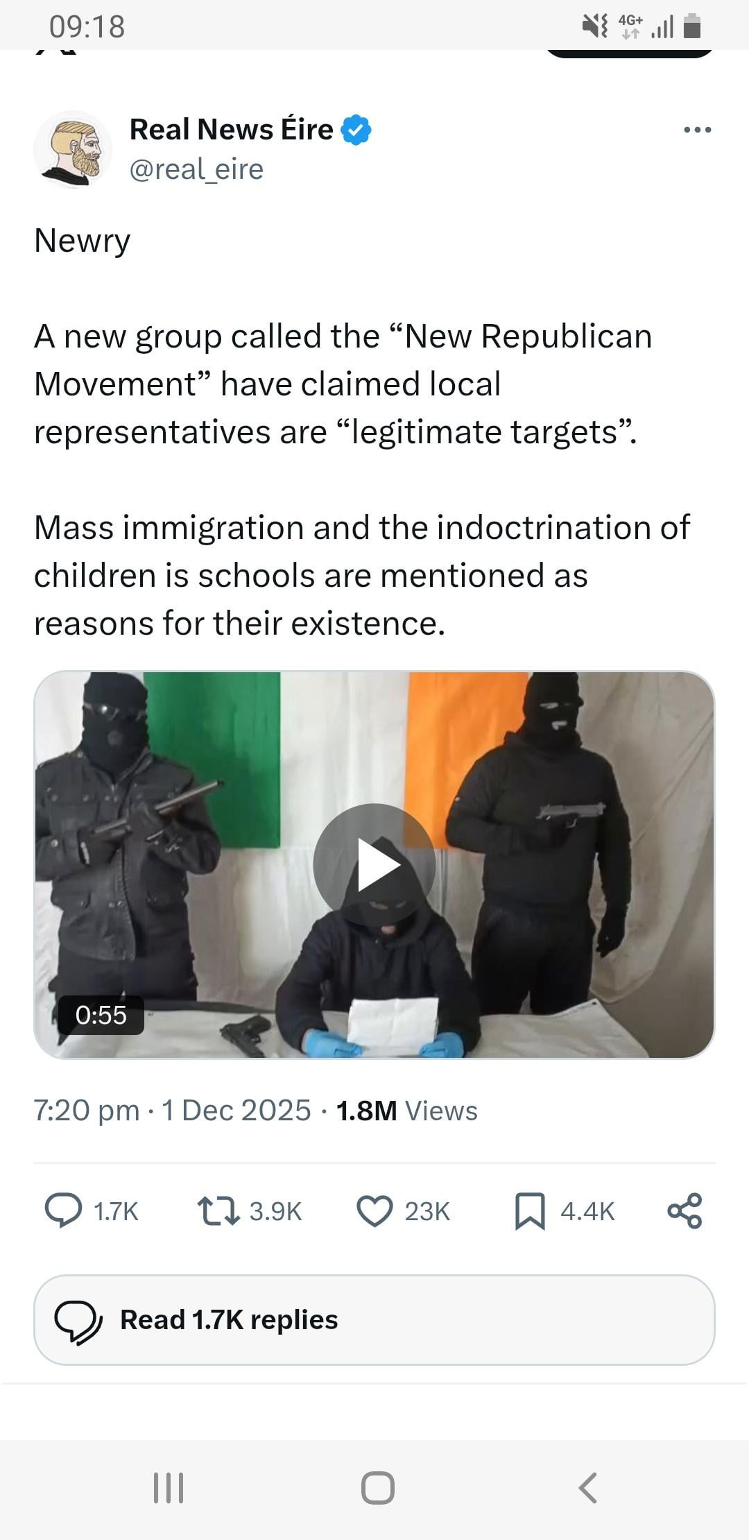 Cosplay gobshites. The irony is that the (tiny) nationalist leaning element of the far right in the north are aligned with unionism on social issues. So you have bizarre scenarios like these clowns stood in front if a tricilour threatening SF and SDLP reps, even dissidents aligned groups like Eirigi and RSF, meanwhile, DUP politicians are addressing anti-immigration protests with people waving tricolours.