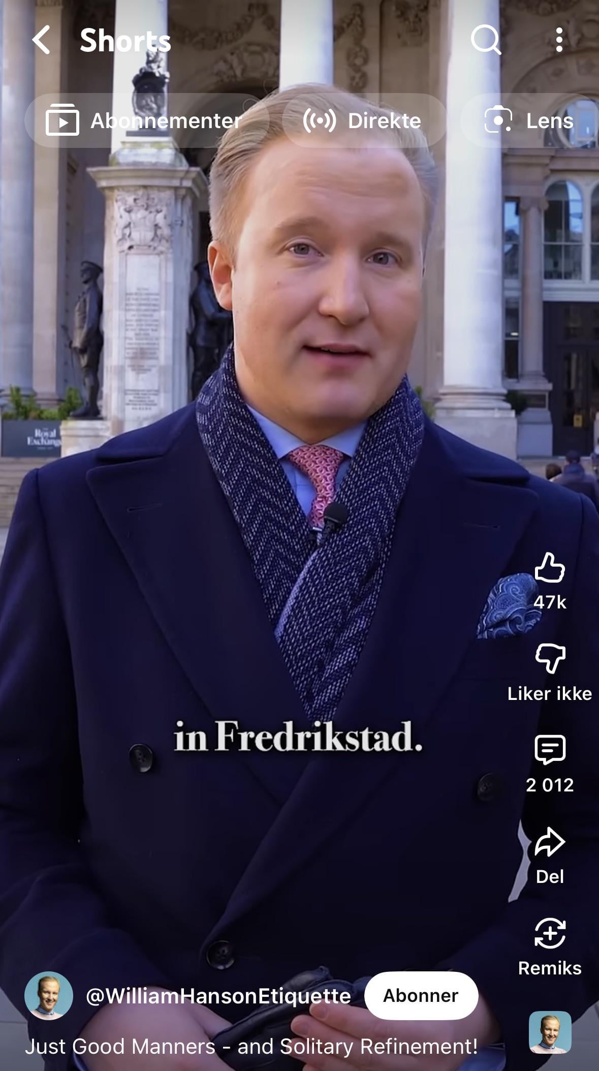 Well known British professional etiquette expert William Hanson, https://en.wikipedia.org/wiki/William_Hanson_(author) released earlier this year a video to promote his new book «Just good manners», and for some reason namedropped Fredrikstad, Norway, as a place where he might not fit in: