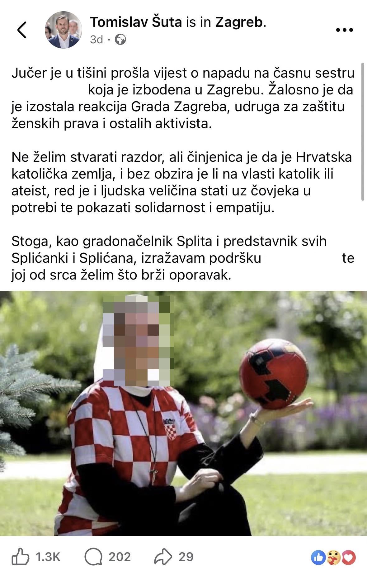 Splitski gradonačelnik Tomislav Šuta (HDZ) još nije izbrisao huškačku objavu u kojoj je javno objavio ime, prezime i sliku ranjive sestre u očito teškoj zdravstvenoj krizi. Dostojanstveno.