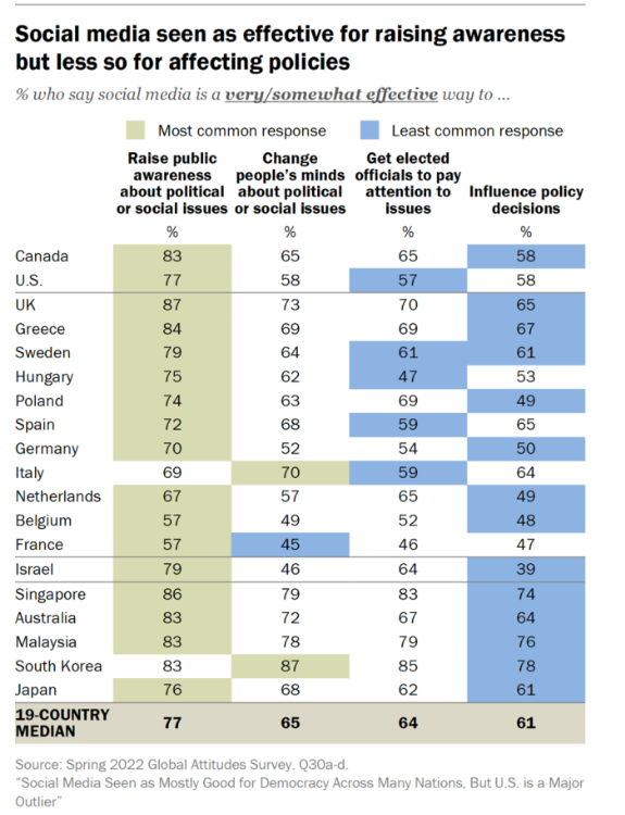 However, for these narratives to reach beyond expert circles, Ukraine should work more actively with formats that can engage a broader audience. Limited budgets can be offset by substantive collaborations—for example, short documentary videos, public lectures, or joint podcasts with German journalists, experts, and influencers who already have the trust of large audiences. Particular attention should be paid to social media. According to a 2022 Pew Research Center survey, people in developed countries generally consider social media useful for raising public and elected officials’ awareness of specific issues. In Germany, this share reached 70%. And although the same survey shows that only 50% of Germans believe that social media directly influence political decisions, that is still a significant number. Eurobarometer data for 2023 indicate that an average of 59% of EU citizens use social networks. In Germany, this figure is among the lowest in the EU (49%), but it still represents nearly half of the population.