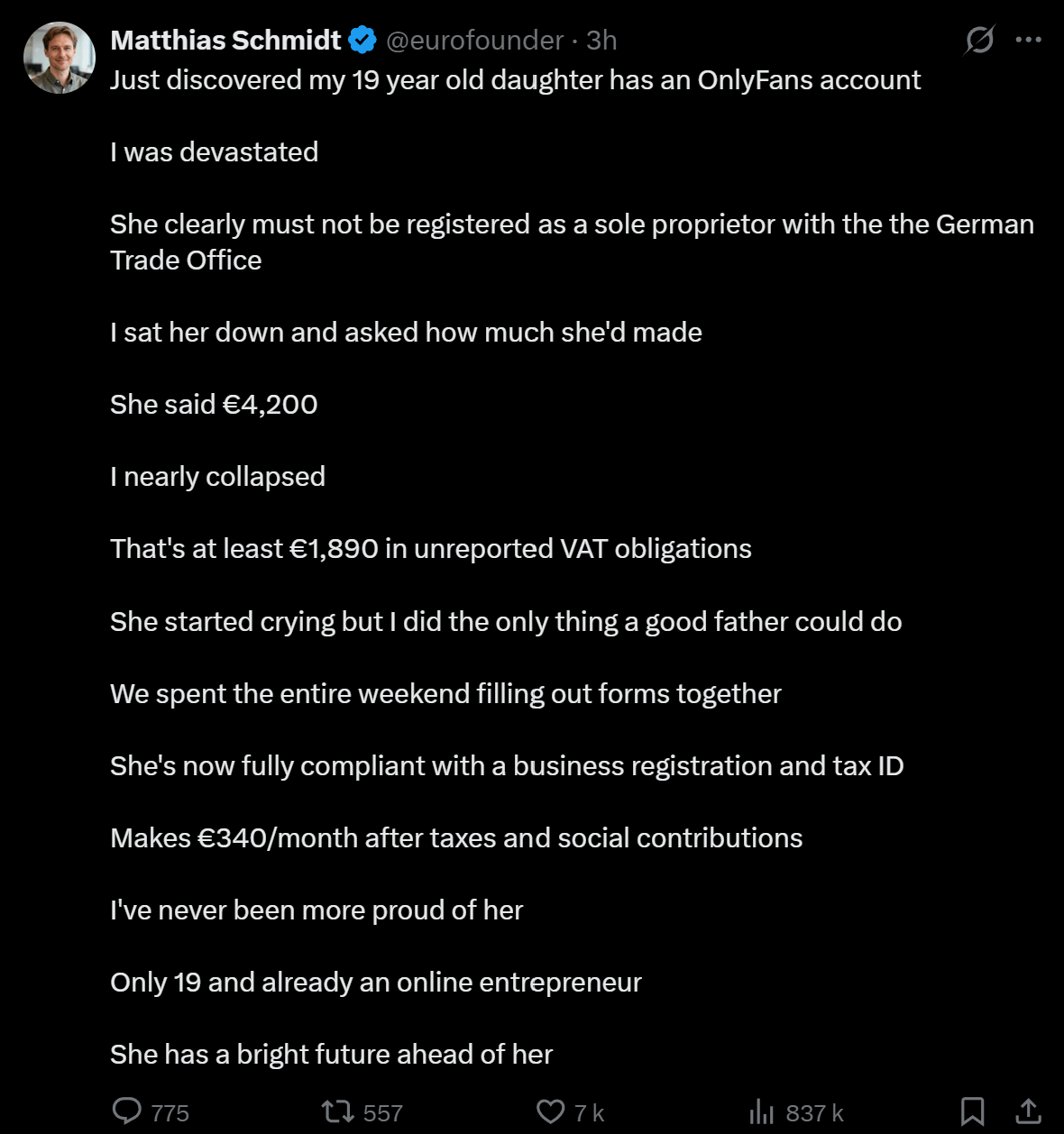 The comments under the tweet are hilarious : [https://x.com/eurofounder/status/1996219118551273491](https://x.com/eurofounder/status/1996219118551273491)