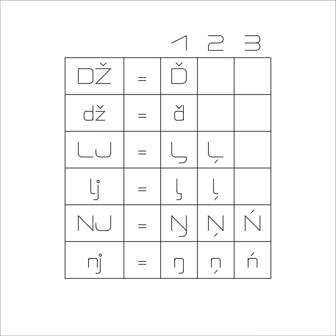 Slova u 1. redu sam smišljao (osim "Ď"), a u 2. i 3. redu + "Ď" su predlagana. Takođe, neka slova već postoje u Unikodu – Ď, Ļ, ļ, Ņ, Ń, ņ, ń.